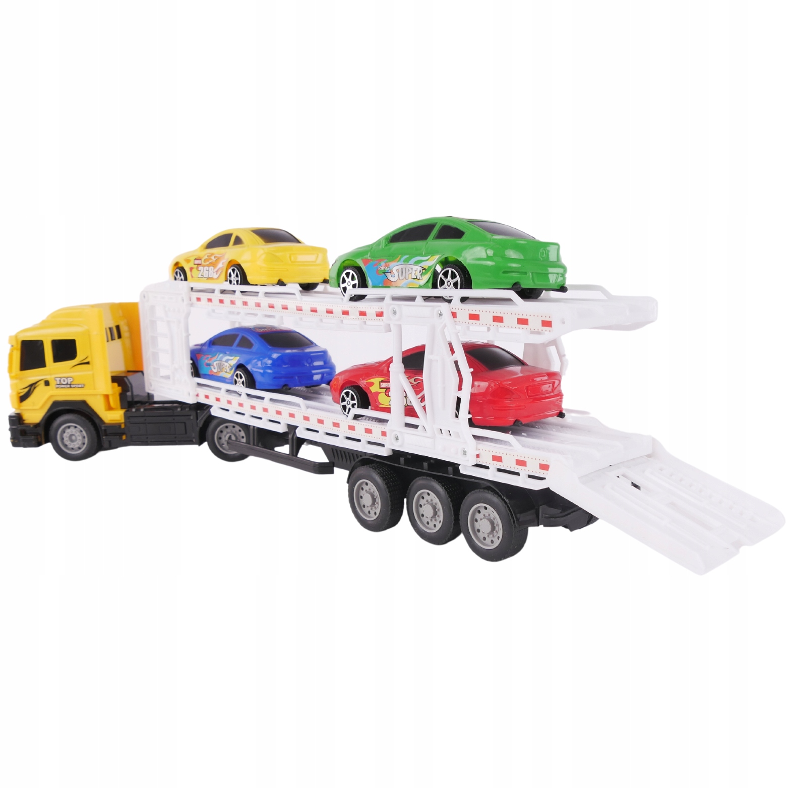Транспортные автомобили: Игрушка предназначена для перевозки небольших автомобилей. На платформе прицепа можно разместить несколько машин, что позволяет ребенку создавать собственные сценарии передвижения.