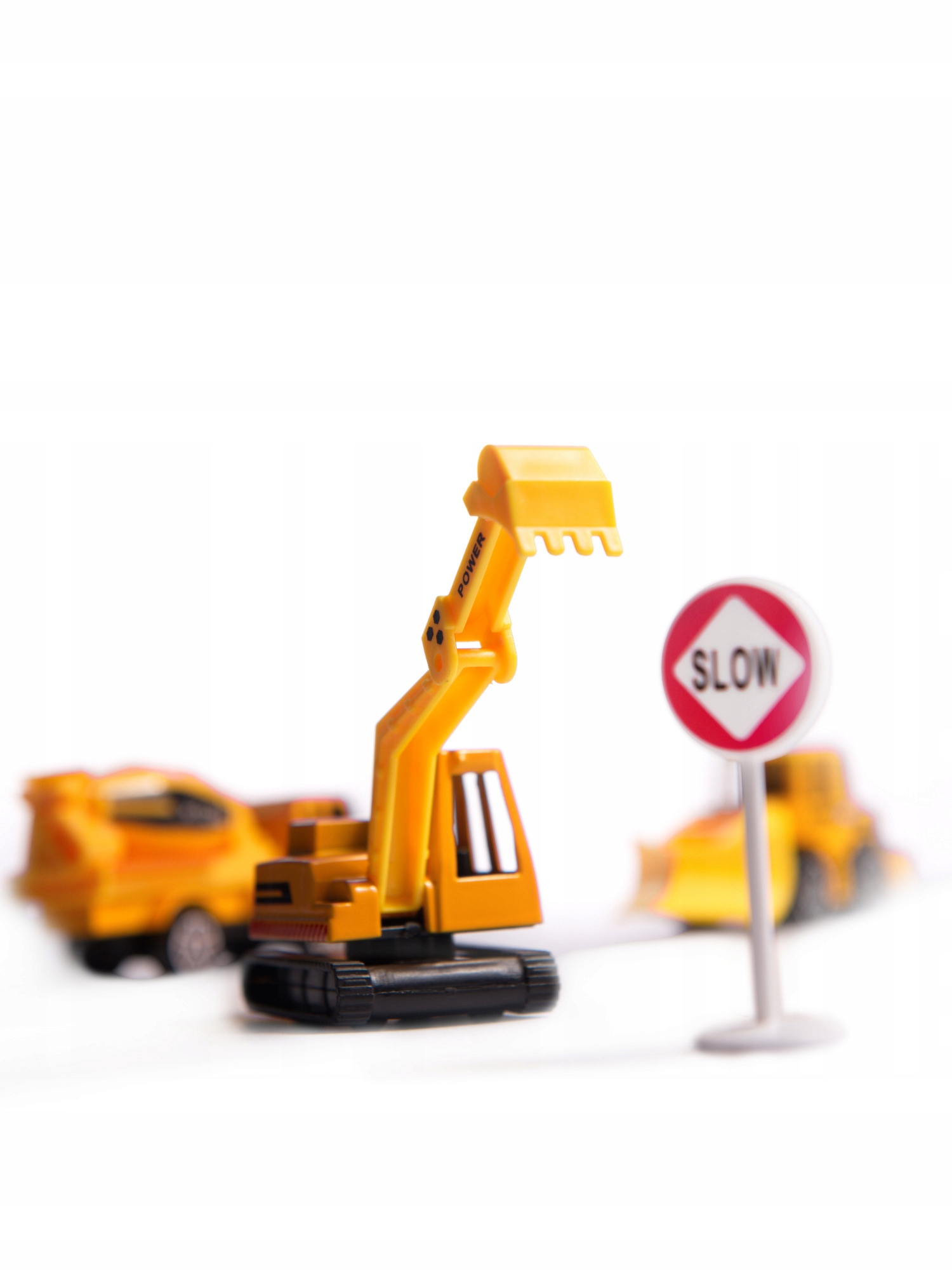 В комплект входят 3 строительные машины желтого цвета: