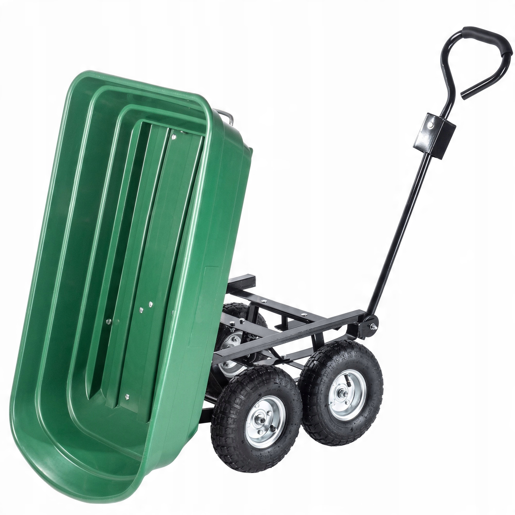 Благодаря высокой грузоподъемности тележки – до 300 кг и соответствующей ширине вы сможете быстро и качественно транспортировать и разгружать любые материалы, товары или пакеты. Тележка подходит для перевозки таких грузов, как: мешки с землей, гравием, скошенной травой, песком, удобрениями, сеном, фруктами или камнями. На ней также можно перевозить тяжелые посылки и картонные коробки или любые другие виды грузов. инструментов для ухода за садом, включая грабли и мотыги.