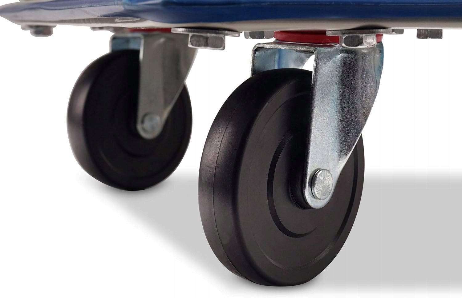 - тележка оснащена 4 резиновыми опорными колесами - двумя поворотными и двумя фиксированными для лучшей маневренности.