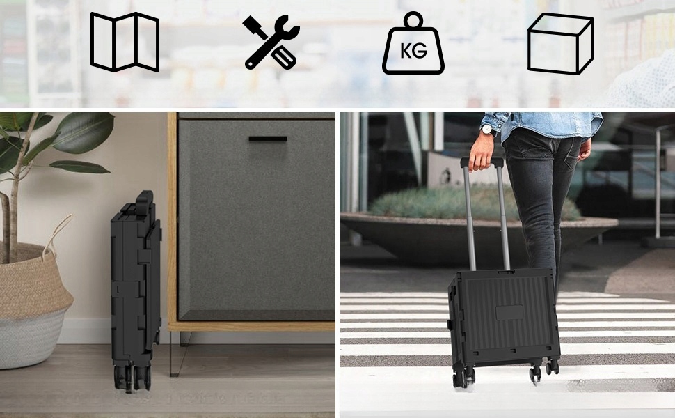 Складывание корзин для покупок очень практична. Его можно сложить и развернуть через несколько секунд (размеры после складывания: 36,5 × 8 × 44 см) и хранить в чемодане, под кроватью, в гардеробе или в гараже. Легко транспортировать и хранить.