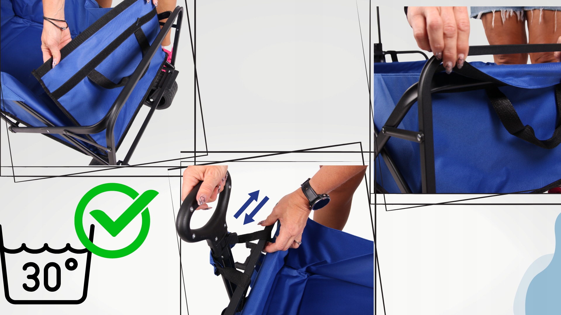 - ✅Карманы на внешних сторонах транспортной тележки -идеально для хранения небольших предметов, таких как пляжные аксессуары или игрушки.