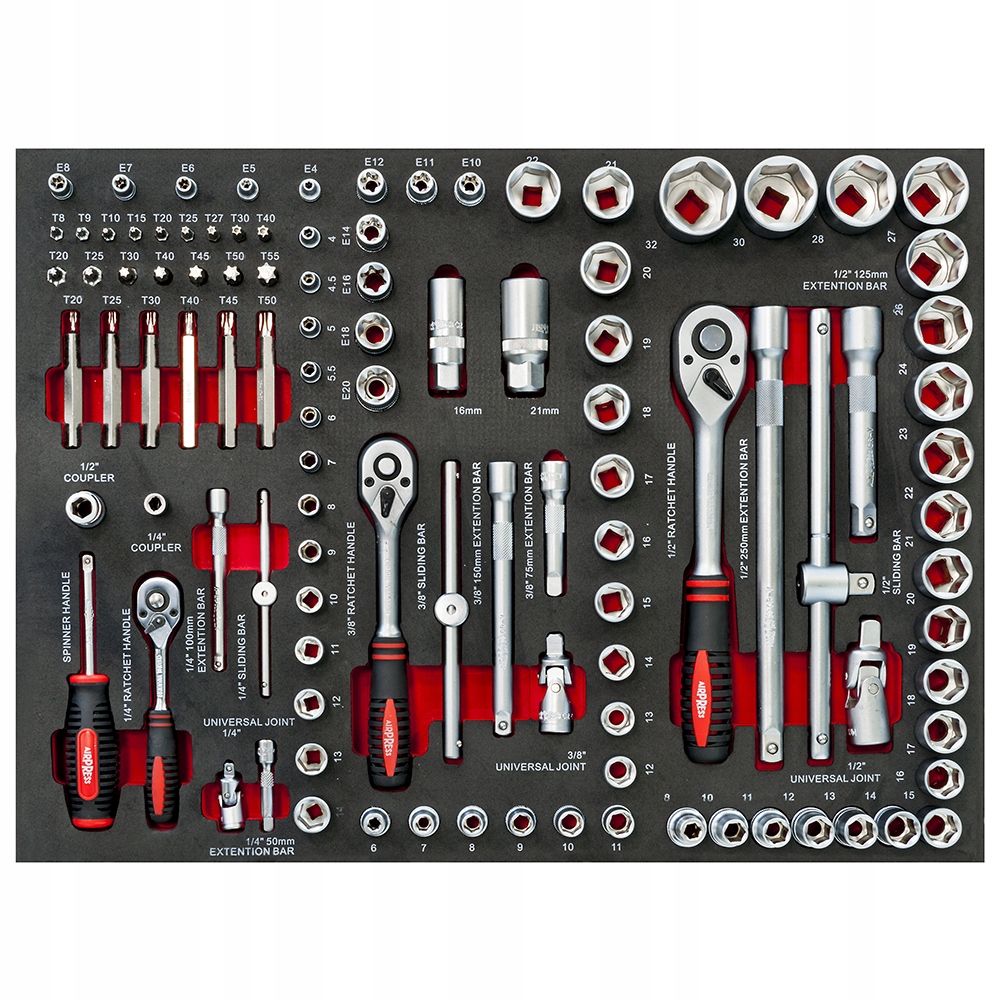 Описание профессиональной тележки для инструментов с 217 элементами и 7 ящиками.