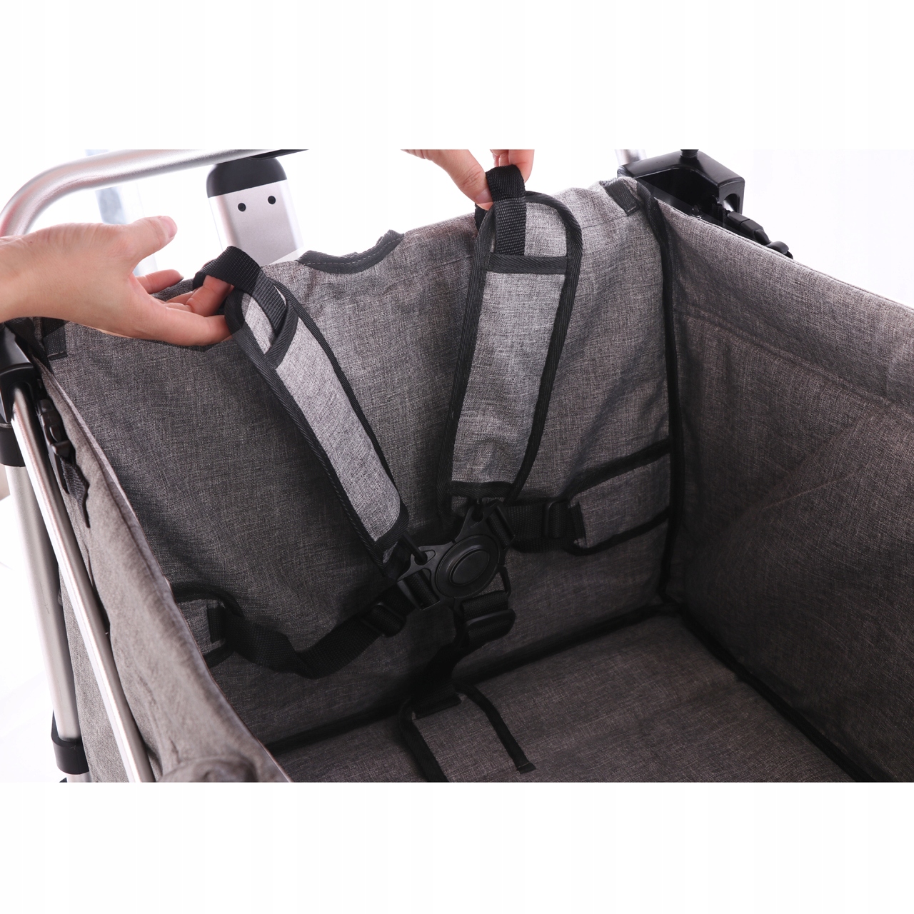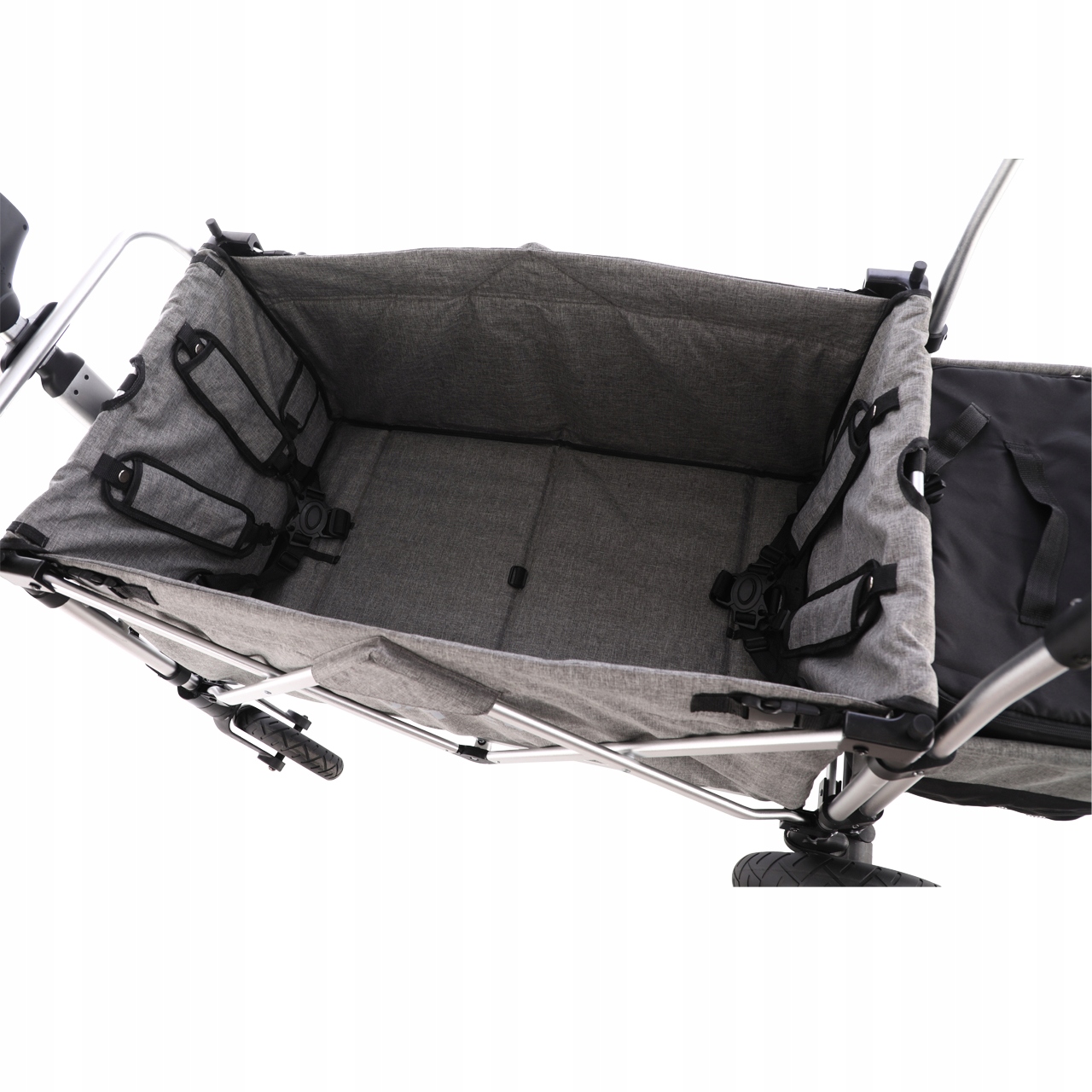 - Благодаря глубокой мягкой подкладке (мягкий пол и спинка) дети сидят в коляске еще безопаснее.