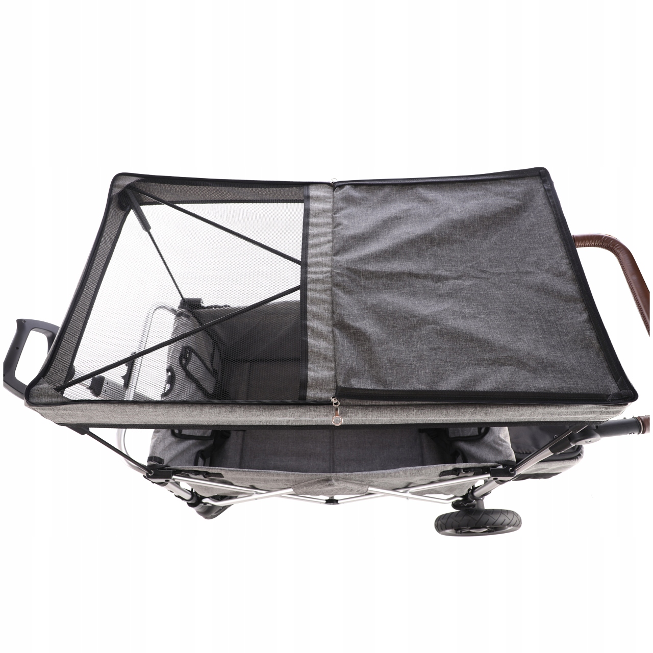 - Легкое раскладывание навеса — он обеспечивает детям достаточную тень в солнечные месяцы, а при необходимости его можно даже открыть.