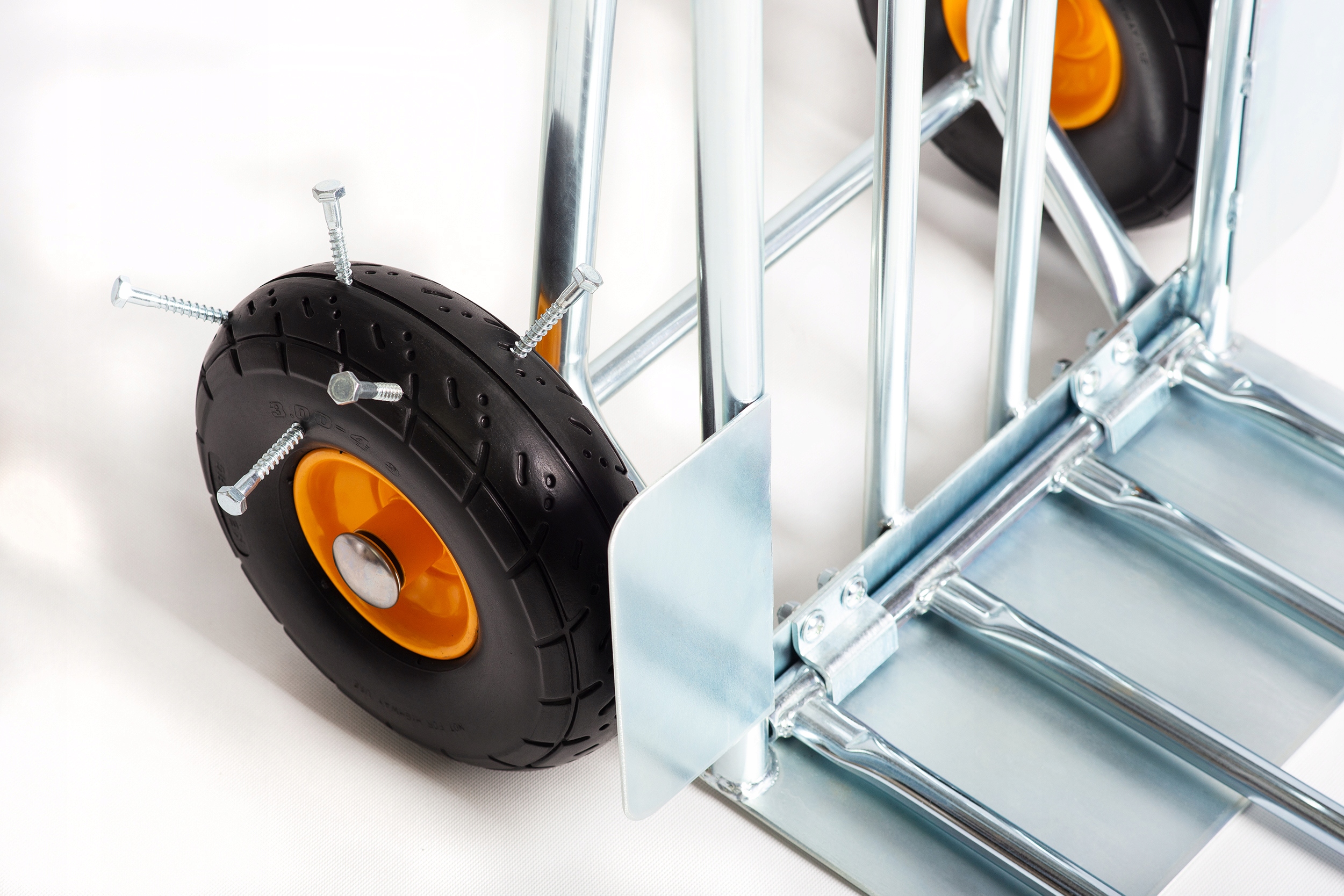 - Безопасные и удобные ручки, которые не соскальзывают при транспортировке грузов по лестнице или неровной местности.