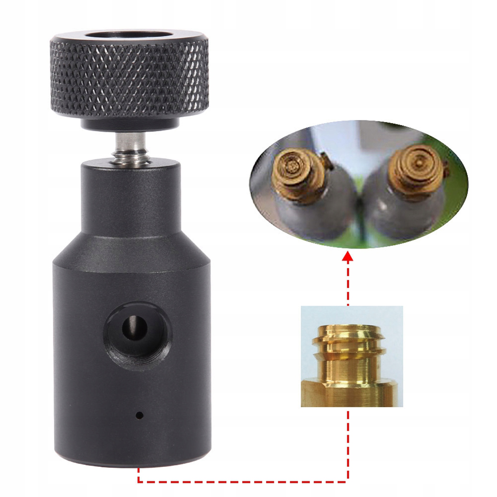 3. Легко прикрутить пустой цилиндр CO2 в адаптер.