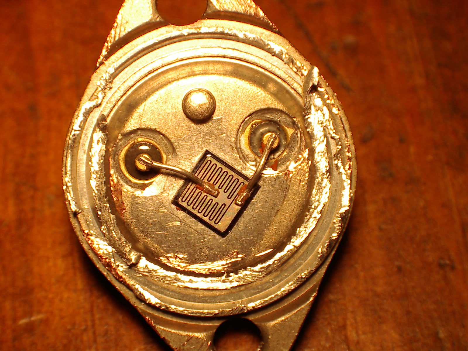 На фотографиях ниже показаны различия в структуре сердечника транзисторов 2N3055 и транзистора КД502, имеющего структуру, аналогичную КД502 , но имеет более слабые параметры.