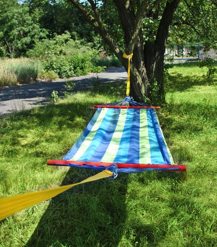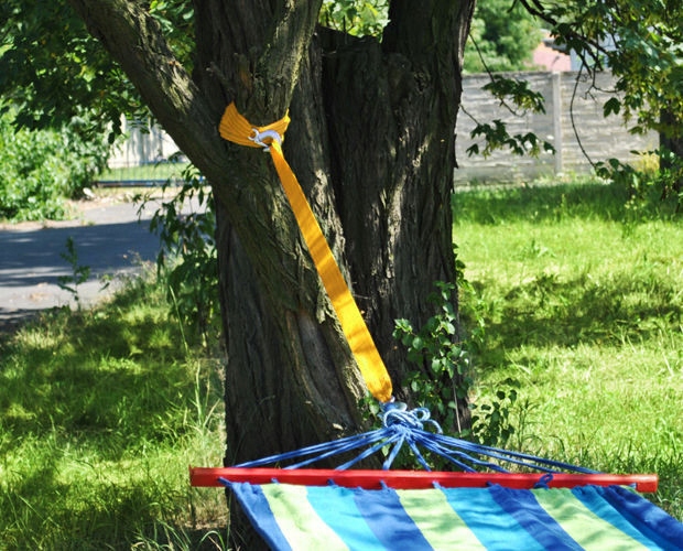 Идеально будет, если между деревьями/столбами, между которыми вы хотите повесить гамак, будет слишком большое расстояние, а прикрепленные к гамаку звенья слишком короткие.