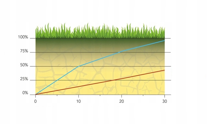 Добро пожаловать, этот газон восстанавливается на 100 % по сравнению с обычными газонами, которые через 30 дней восстанавливаются менее чем на 50 % (красная линия).