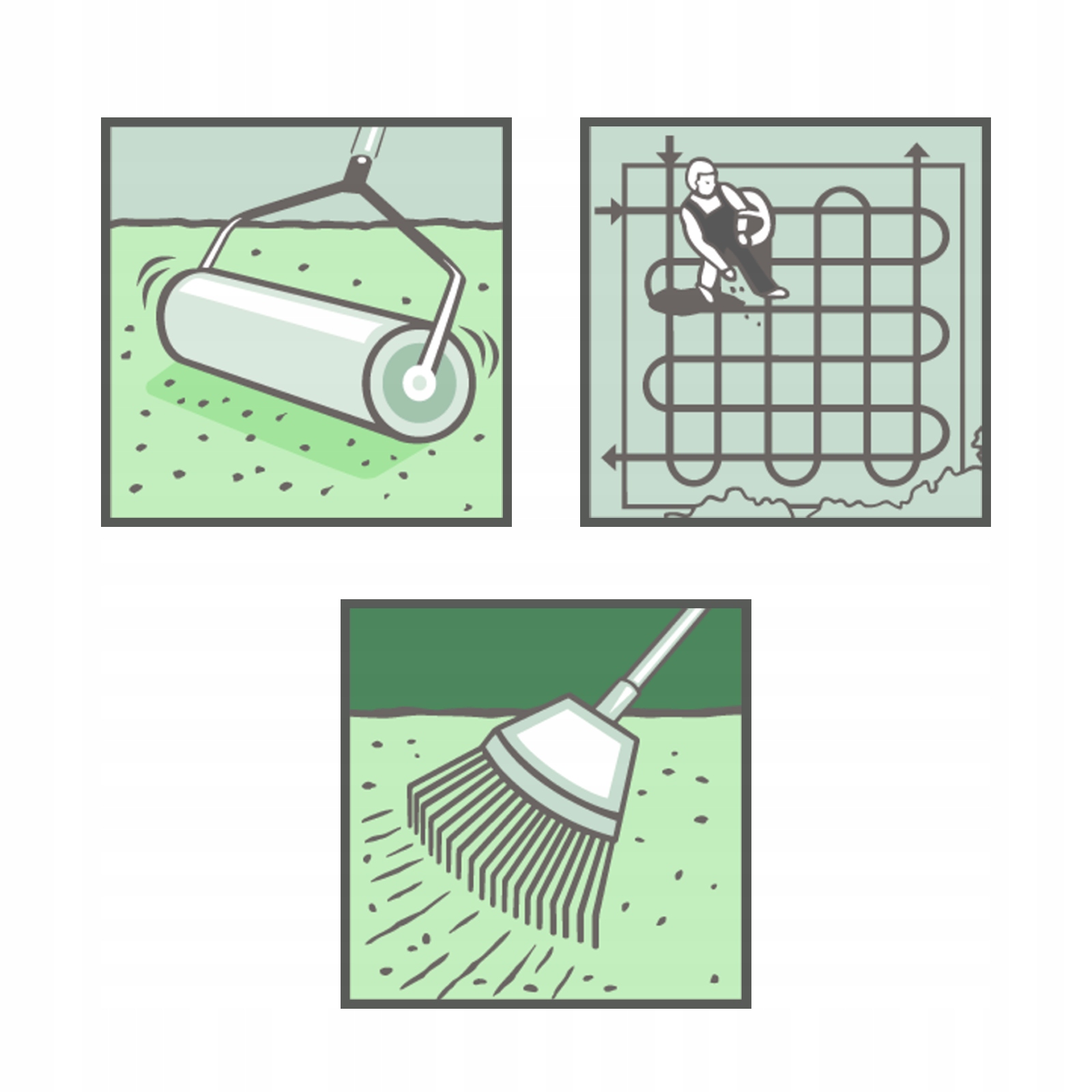 ✅ Выравнивание и ослабление почвы - обеспечит лучший укоренение травы.