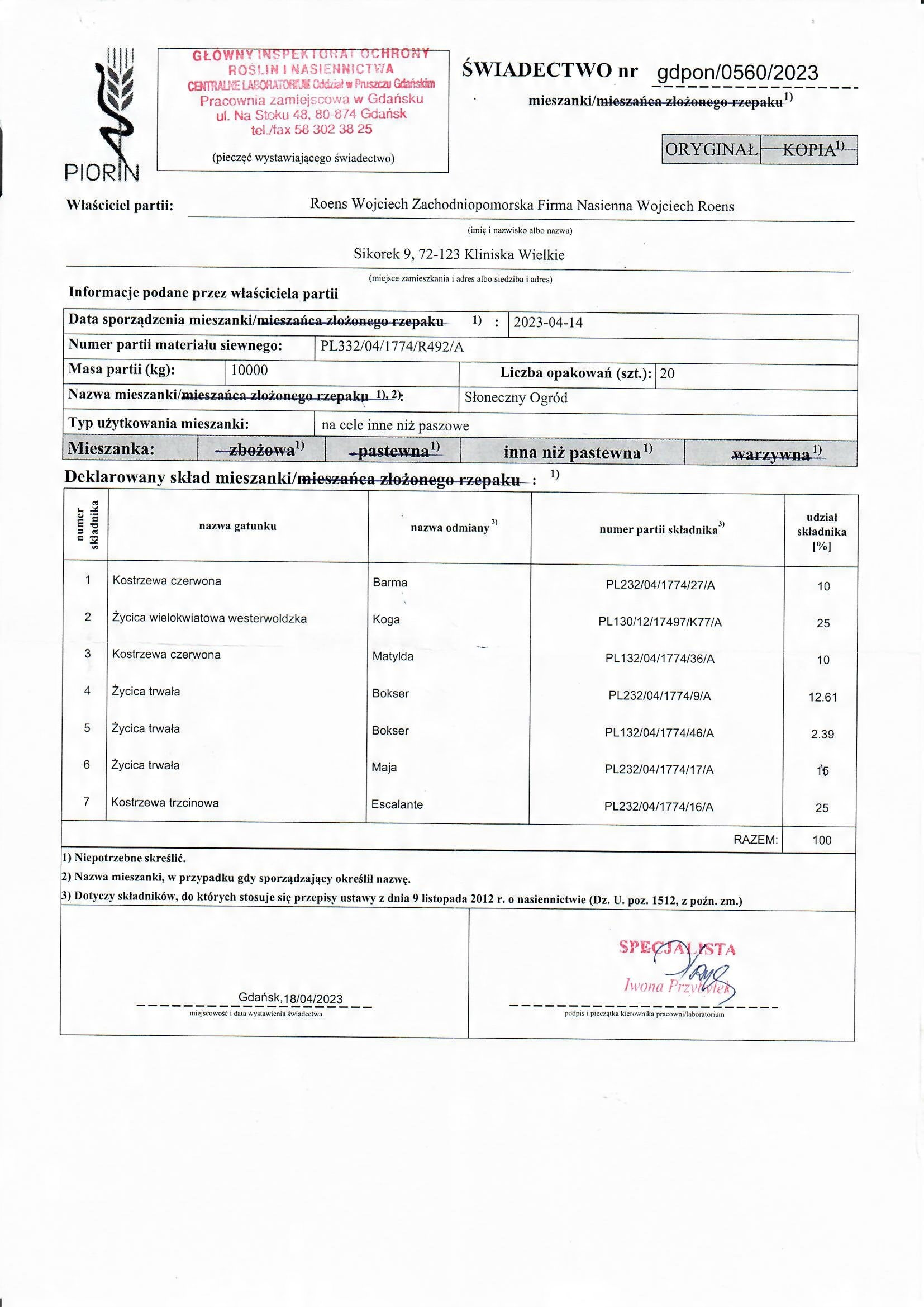 - Очень высокая всхожесть смеси, до 96%, подтвержденная сертификатом качества (ниже).