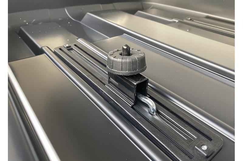 коробка на крыше с современной аэродинамической формой. Остался Спроектировано таким образом, чтобы немного повлиять на высоту транспортного средства (некоторые Коробка проникает между переводами на перилах), благодаря которой она составляет великолепный с автомобилем, сохраняя функциональность и большие емкость.