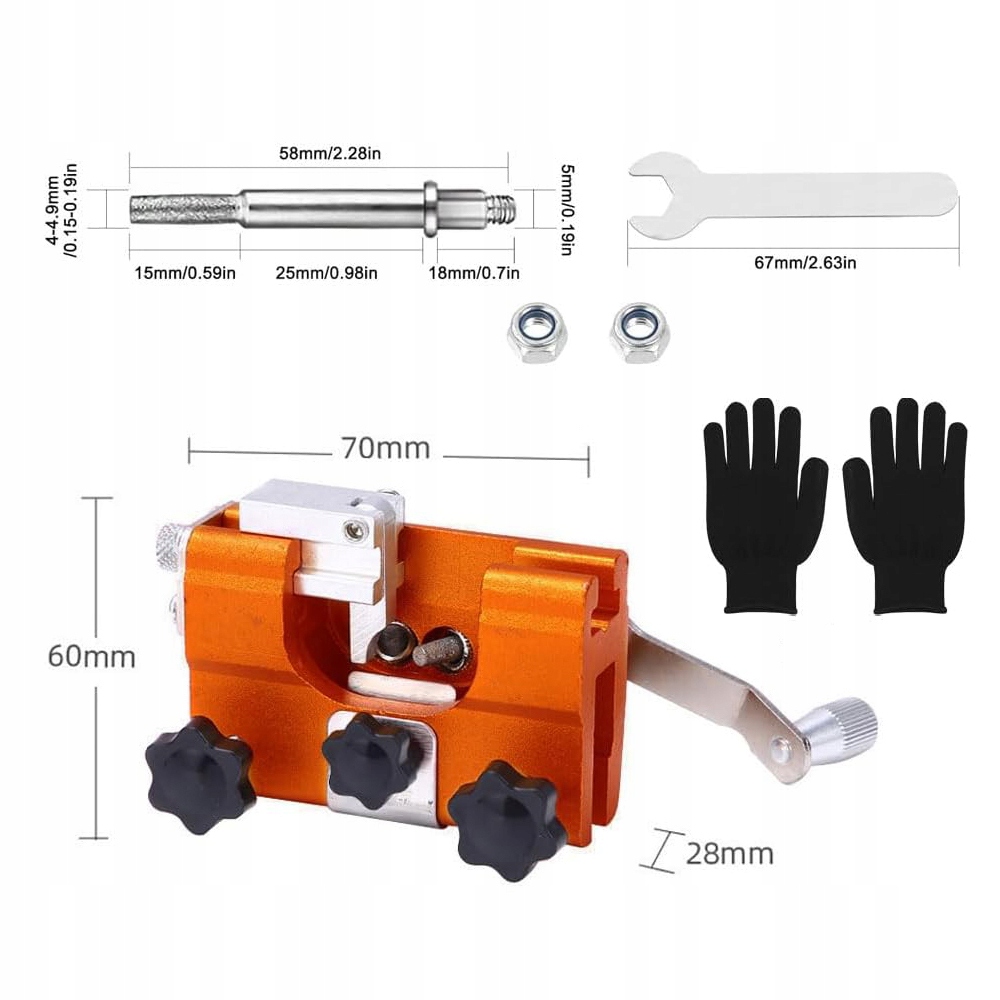 ✔, изготовленные из высококачественной из нержавеющей стали и алюминиевого сплава, который нелегко повредить, ржаветь и долговечна. Положение цепи, которая должна быть заточена, тщательно восстанавливает каждую цепь и обеспечивая восстановление каждого зуба.