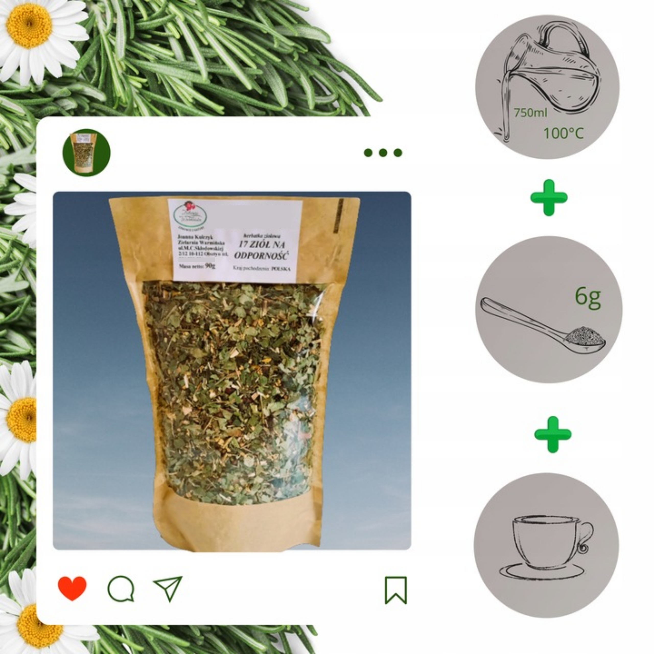 ❤ чай 17 травы на иммунитете - это настоящая сокровищница природы, созданная для укрепления сил обороны вашего тела. Наша уникальная смесь содержит 17 тщательно отобранных трав, которые известны своими свойствами, укрепляющими иммунитет и поддерживают механизмы естественной защиты организма. Позаботьтесь о своем иммунитете естественным образом и дотянитесь за чаем 17 трав до иммунитета сегодня!