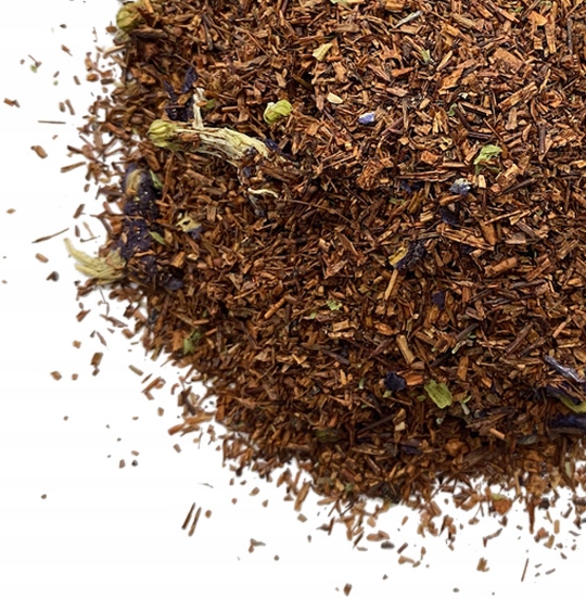 Исключительно ароматный чай ройбуш с порошком черники и черной смородины с добавлением сушеных цветков клитории тройчатой, завершает всю композицию сливочная ваниль< /б>. Идеальный чай в любое время суток.