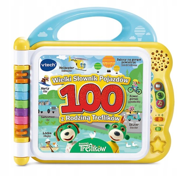 Большой словарь транспортных средств семейства TREFLIK от Vtech — интерактивная двуязычная развивающая игрушка, созданная для детей с 18 месяцев жизни. Словарь подарит вашему малышу часы веселья и обучения! У продукта есть 3 забавных варианта: «Слова», «Любопытство», «Забавные звуки»; 12 интерактивных страниц и кнопок с картинками.