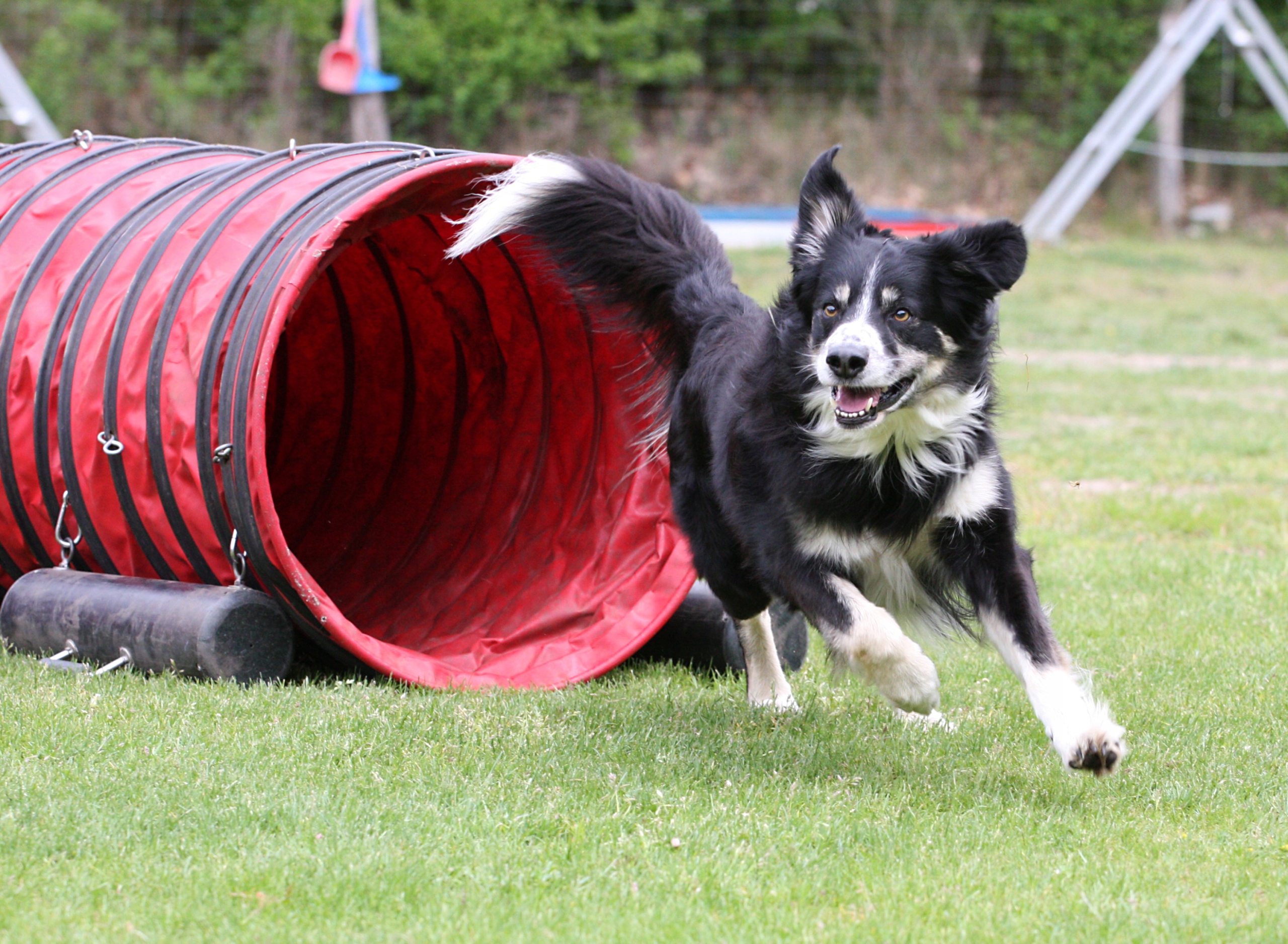 Установите планку на низкой высоте и поощряйте собаку прыгать через них. Постепенно увеличить высоту. Туннель с перепадами