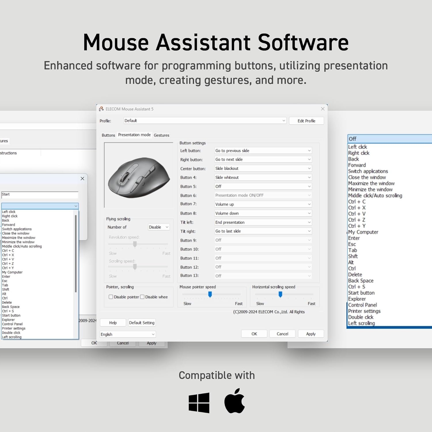 <р> ТЕХНОЛОГИЯ ОПТИЧЕСКОГО СЛЕЖЕНИЯ ELECOM Трекбол «DEFT PRO» обеспечивает точное перемещение курсора, обеспечивая превосходную точность, поэтому вы можете быстро попасть в нужное место на экране, сокращая количество движений рук, что повышает производительность и эффективность. <р> Функциональные 8 кнопок: каждой кнопке можно назначить любимую функцию с помощью «ELECOM Mouse Assistant». Программное обеспечение ELECOM Mouse Assistant доступно для скачивания на сайте ELECOM NET. <р> DPI-КУРСОР. Разработан с использованием высококачественного системного сенсора и объектива для игровой оптики. Кнопку DPI можно легко переключать между 500, 1000 и 1500 DPI, ускоряя или замедляя движение курсора. <р> Простота обслуживания: шарик катится на трех шарикоподшипниках из искусственного рубина диаметром 2,5 мм. Они очень гладкие, а относительно большой размер предотвращает их засорение пылью и грязью. Это означает, что вам не придется слишком часто чистить шарикоподшипники. Шар удерживается на месте шарикоподшипниками, но его можно легко снять с устройства, протолкнув его через отверстие в нижней части, и легко очистить. <р> Подробности о продукте: Системные требования: Windows 8, Windows 10, Windows 11 или более поздняя версия (функция горизонтальной прокрутки не работает в Windows RT8.1), macOS 10.13 или более поздняя версия. Размер: Ш3,6 дюйма (91,4 мм) X L5,3 дюйма. (133,4 мм), беспроводной/Bluetooth <р> Интерфейс/тип подключения: разъем USB (A) (проводной/беспроводной режим 2,4 ГГц) Поддерживаемые устройства: ПК с ОС Windows, Macintosh, оснащенный интерфейсом USB. Поддерживаемые операционные системы: Windows10, Windows RT8. 1, Windows 8. 1, Windows 7, Macintosh OS X 10. 13 (High Sierra), возможно, потребуется обновить каждую операционную систему и установить пакет обновления. Горизонтальное пролистывание недоступно в Windows RT8. 1 шт. Разрешение: 500/1000/1500 (переключаемый) Метод радиоволн: GFSK (беспроводной режим 2,4 ГГц)/FHSS (режим Bluetooth) Радиочастота: 2,4 ГГц (беспроводной режим 2,4 ГГц/Bluetooth) Рабочее расстояние : на магнитной поверхности (например, стальной стол): 3М, на немагнитной поверхности (например, деревянный стол): 10М Метод считывания: Метод оптического датчика Тип выхода оптического луча: Невидимая область длины волны Количество кнопок: 8 Включает ручку-колесо Количество колеса: 1 Горизонтальная прокрутка: Поддерживается хранение данных приемника: 1 Непрерывная работа (беспроводной режим 2,4 ГГц): Режим низкого энергопотребления: Приблизительно 134 часа Высокоскоростной режим: Приблизительно 91 час Непрерывная работа (режим Bluetooth): Режим энергосбережения: Приблизительно . 167 часов Высокоскоростной режим Скорость: Около 104 часов Время непрерывного режима ожидания: (Беспроводной режим 2,4 ГГц/Bluetooth): Примерно 925 дней Расчетный срок службы батареи (Беспроводной режим 2,4 ГГц): Режим низкого энергопотребления: Около 301 день Высокоскоростной режим. : около 211 дней. Примерное состояние батареи (режим Bluetooth): Режим низкого энергопотребления: около 366 дней. Высокоскоростной режим: около 240 дней. Мы подсчитали, что это при использовании компьютера в течение 8 часов каждый день. Источник питания (корпус): либо один из марганцево-щелочных сухих элементов типа АА, либо никель-металлогидридный аккумулятор типа АА. Напряжение питания: 1,5 В. Классификация по размеру: Очень большой размер. Вес (мышь): около 162 г. Батарея в комплект не входит. Вес (приемник): около 2 г. Аксессуары Сухой щелочной элемент типа АА