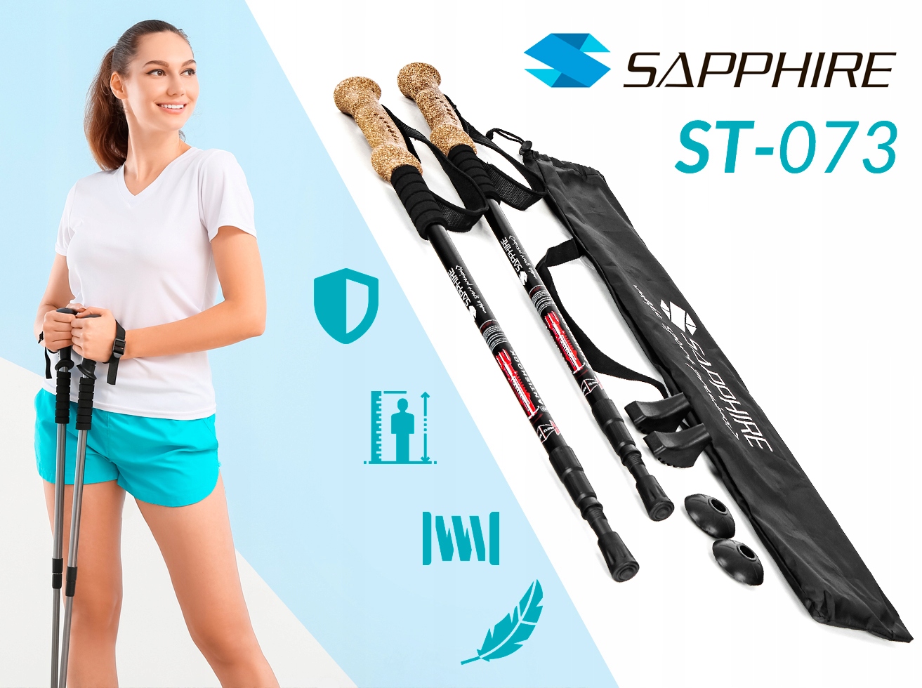 Представляем Вам фирменные трекинговые палки Sapphire ST-073, изготовленные из чрезвычайно легкого и прочного дюралюминия.