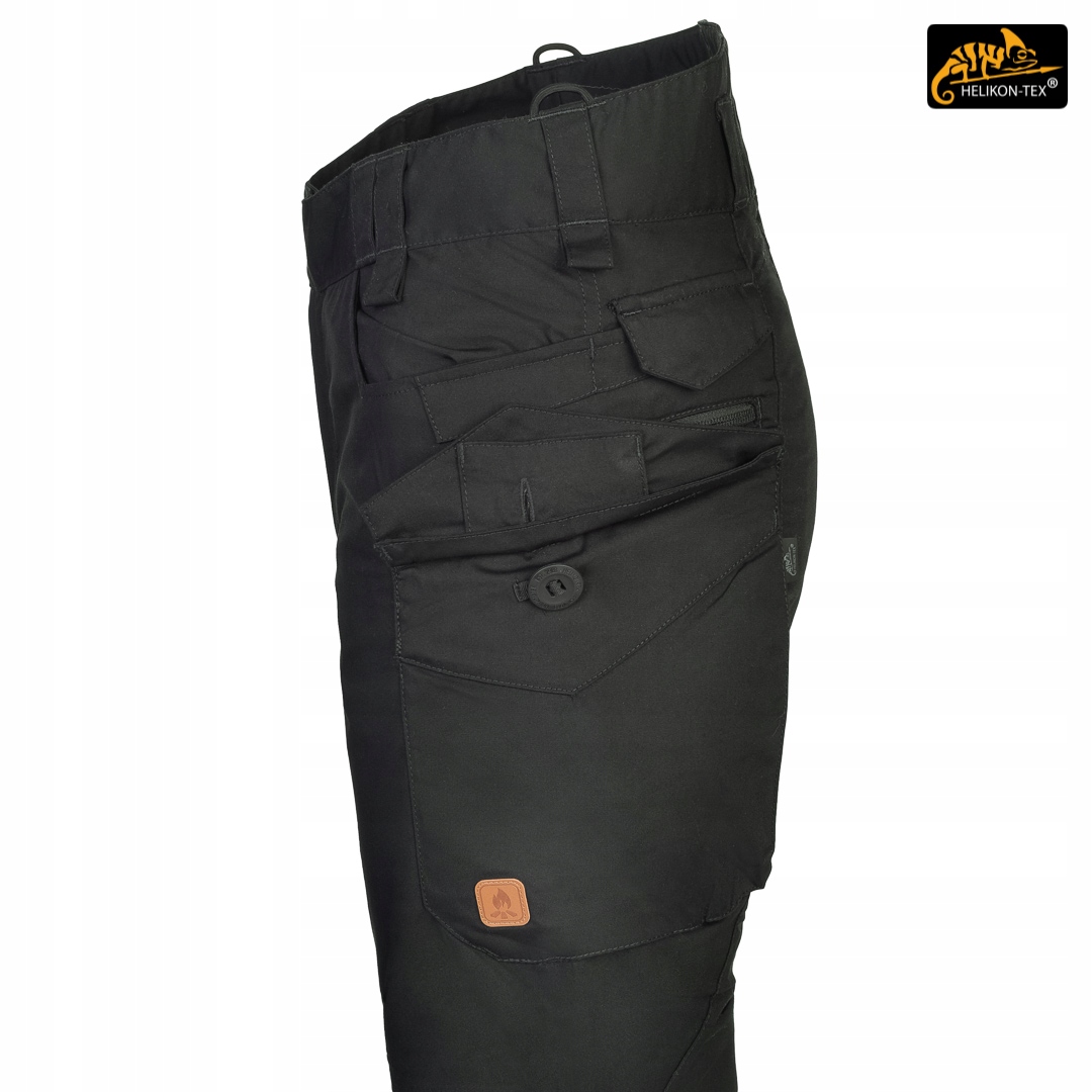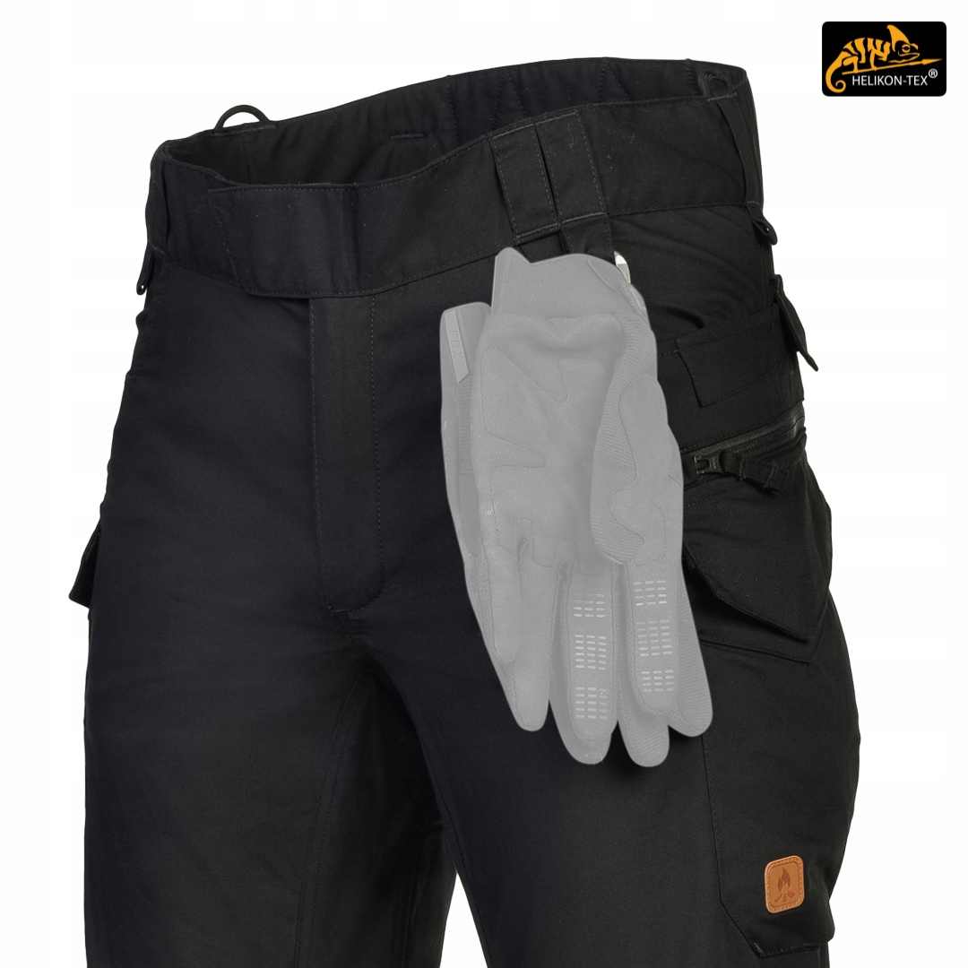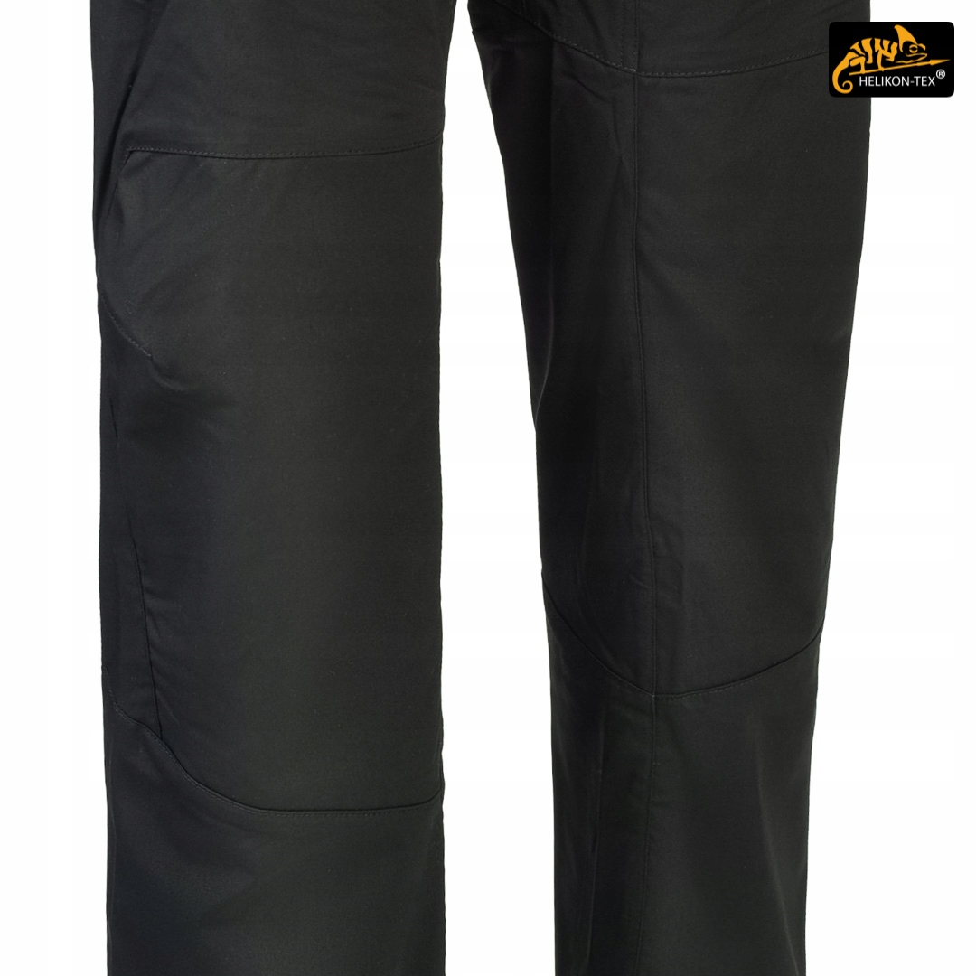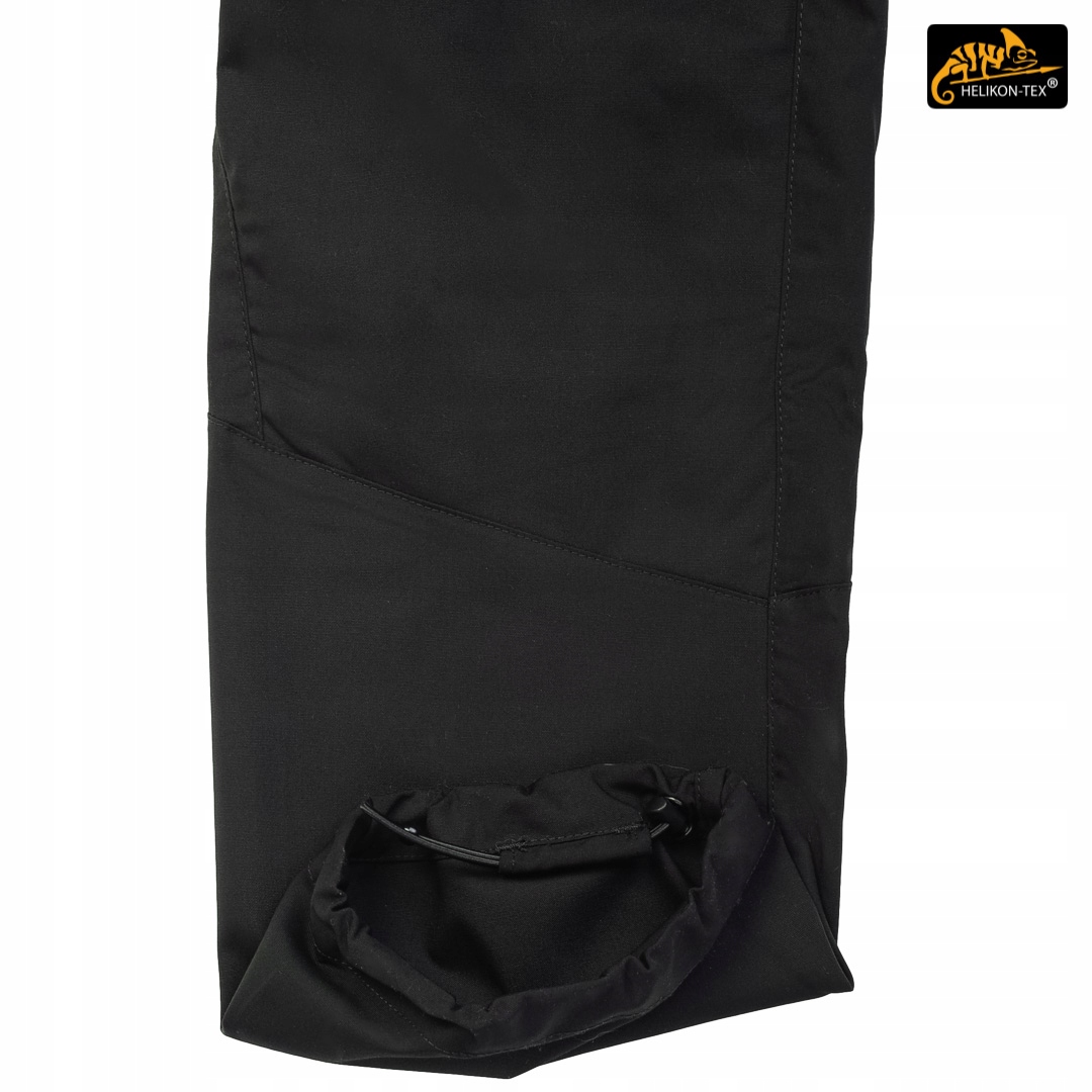 Универсальный крой гарантирует практичность, комфорт и хороший внешний вид. Прямые штанины и плоские карманы не ассоциируются с типичными армейскими брюками, что делает брюки идеальными для повседневного ношения. Длинная молния YKK, прикрытая клапаном. Застегивается на талии с помощью липучки, что позволяет регулировать окружность в соответствии с анатомией пользователя или при ношении изолирующего нижнего белья под брюками. Пояс и шлевки для ремня изготовлены из двойного слоя материала для прочности. Брюки имеют удлинитель сзади, защищающий поясницу и область почек при наклонах или сидении. Удлиненная часть спинки имеет мягкий наполнитель из дышащей спейсерной сетки MESH 3D, что позволяет сохранять тепловой комфорт и удобство использования вместе с жесткими лямками. Плотно расположенные шлевки для ремня шириной 50 мм. Под боковыми и передними петлями для ремня имеются петли для крепления подручных предметов с помощью веревки или карабинов (например, гримлока). Вшитая в промежность ластовица гарантирует свободу движений при высоком подъеме ног. Петли из паракорда, вшитые по бокам, используются для крепления подтяжек (Helikon Forester Suspenders). Внизу штанин имеются манжеты, которые позволяют плотно прижать ногу к обуви. Манжеты из эластичной резины Shock Cord, снабжены стопором для быстрой регулировки и специальным туннелем, защищающим свободный конец манжеты от выпирания из ноги.