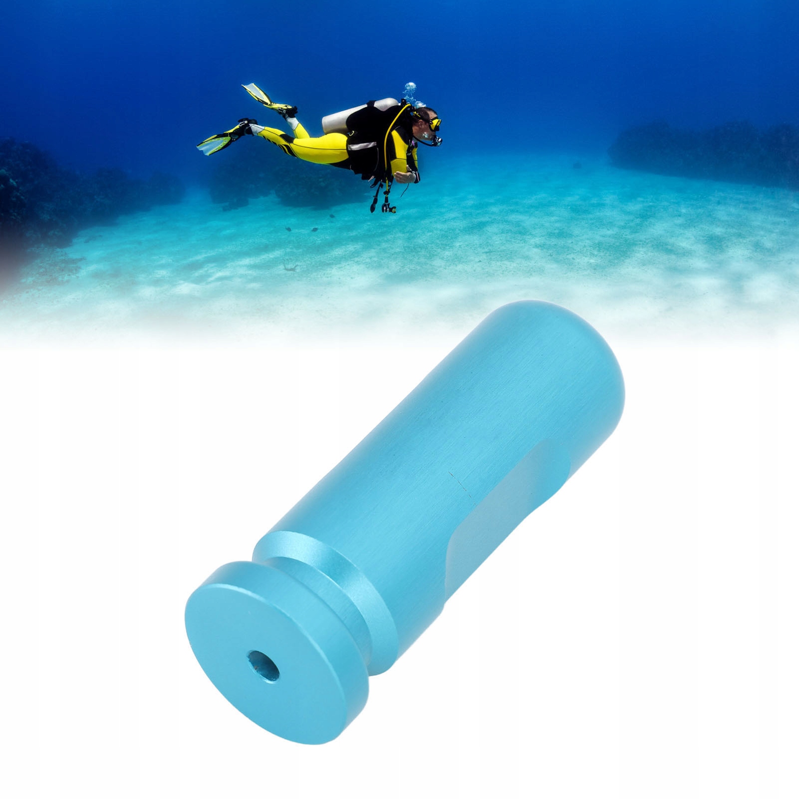 2. УСИЛЕННАЯ РУКОЯТКА С КАНАВКАМИ: Этот тренировочный инструмент с канавками в центре улучшает захват, обеспечивая более стабильный и надежный захват при тренировках под водой. Повысьте свой контроль и уверенность, практикуя свои навыки дайвинга.