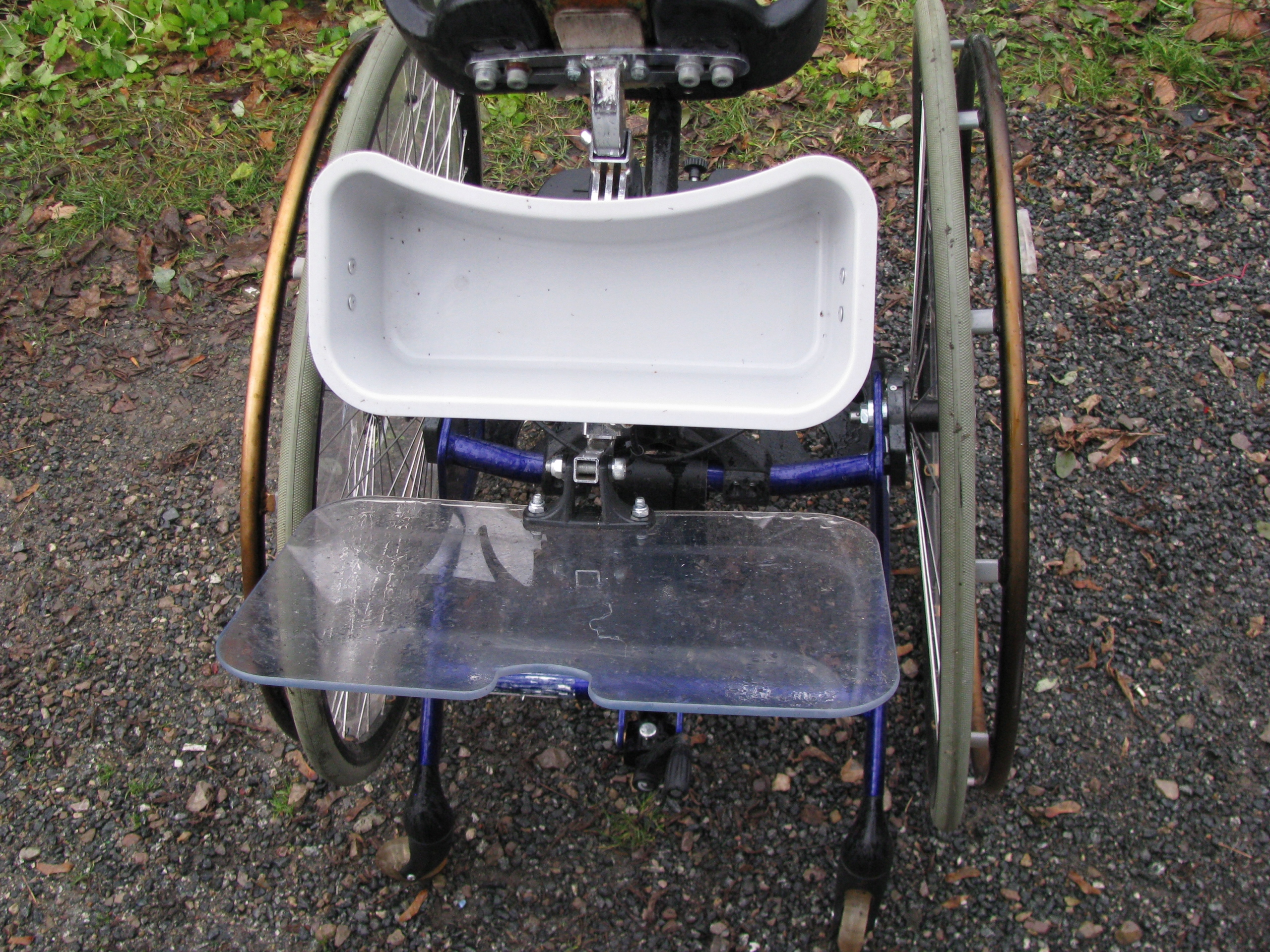 Она имеет регулируемую раму. Угол наклона, центральный тормоз, быстросъемные колеса, нагрудные и наколенники и подножка.