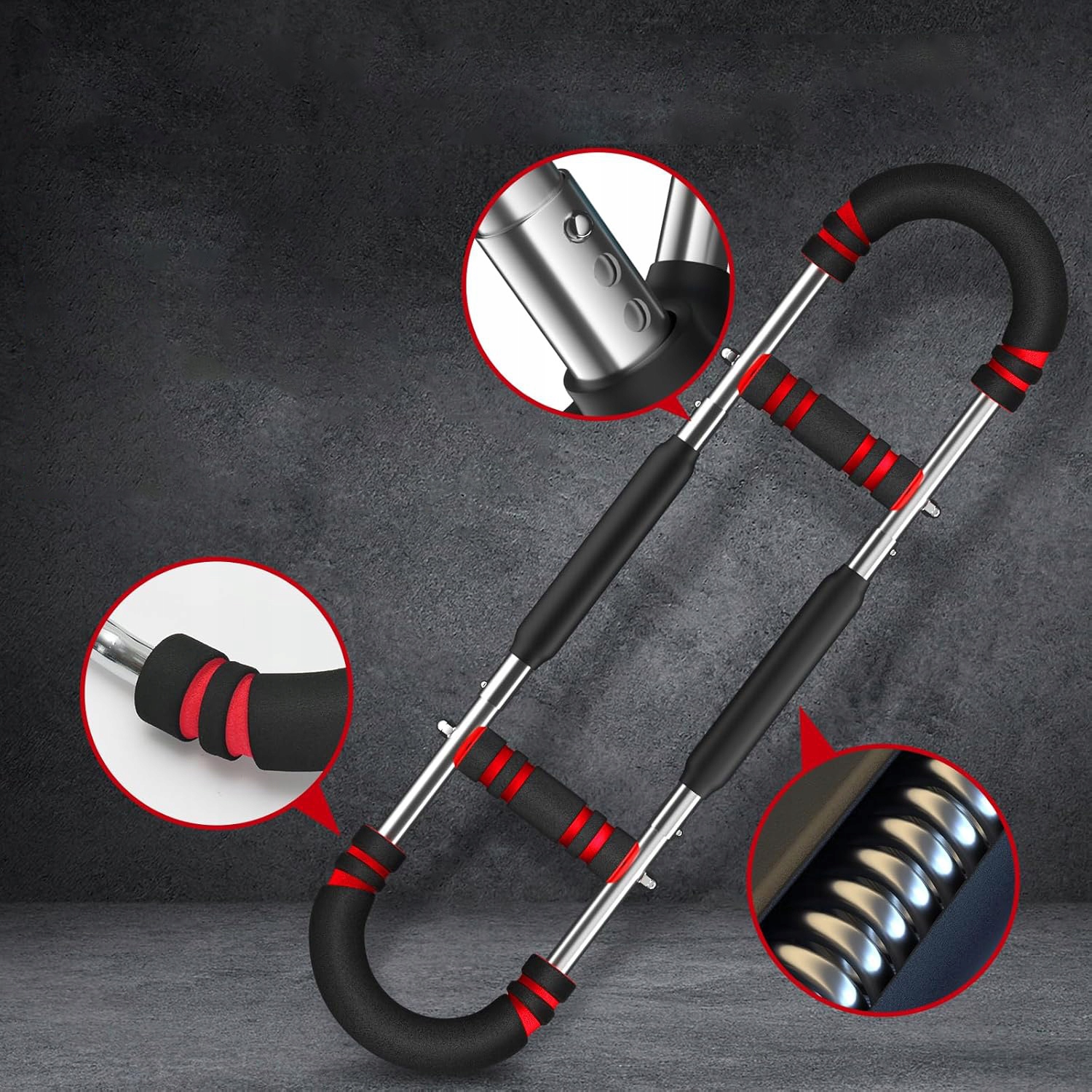 - ✔️Уровень сопротивления регулируется, а расстояние установки пружинной штанги и ручки можно регулировать, адаптируя интенсивность упражнений к индивидуальным целям.