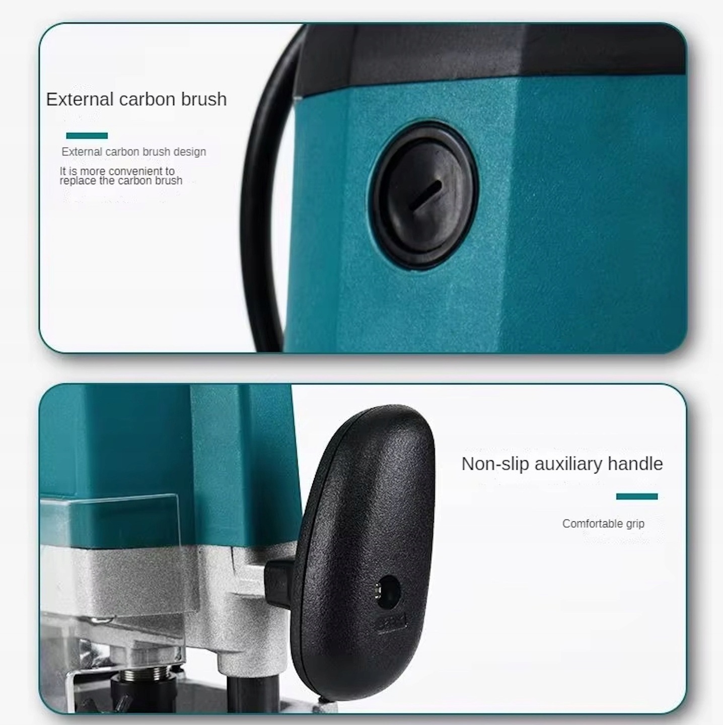 Очень прочная и надежная конструкция.Все элементы регулировки и крепления изготовлены из прочного алюминиевого сплава. Пылезащитная крышка изготовлена из прозрачного пластика. Прочный корпус двигателя, ножка фрезерного стола и ручки изготовлены из прочного композитного полимера.