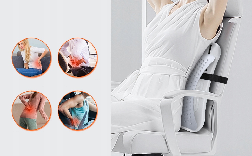 Выберите наш поясничный носитель. Мало того, что он сочетает в себе инновационную структуру, функции облегчения спины, растяжения и массажа, но также является идеальным решением для усталости в офисе, ишиатике и проблемах с поясничным позвоночником. день. Выберите поясничные носилки