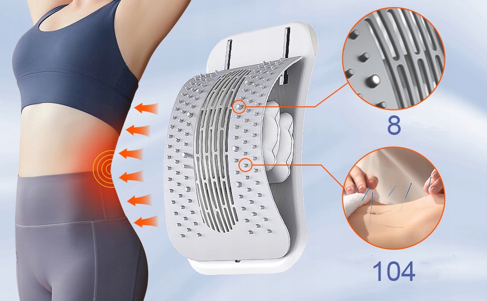 Верхние спины были спроектированы с 8 массивающими магнитными точками акупрессора и 104 выступающими точками, умно распределенными по всей задней части. Круглый и гладкий дизайн не вызовет боли. Глубокое давление устройства для поясничной декомпрессии на определенных точках иглоукалывания приводит к эффектам иглоукалывания и поддерживает кровообращение, помогая расслабить талию и эффективно успокаивая мышечную боль после тяжелого дня.