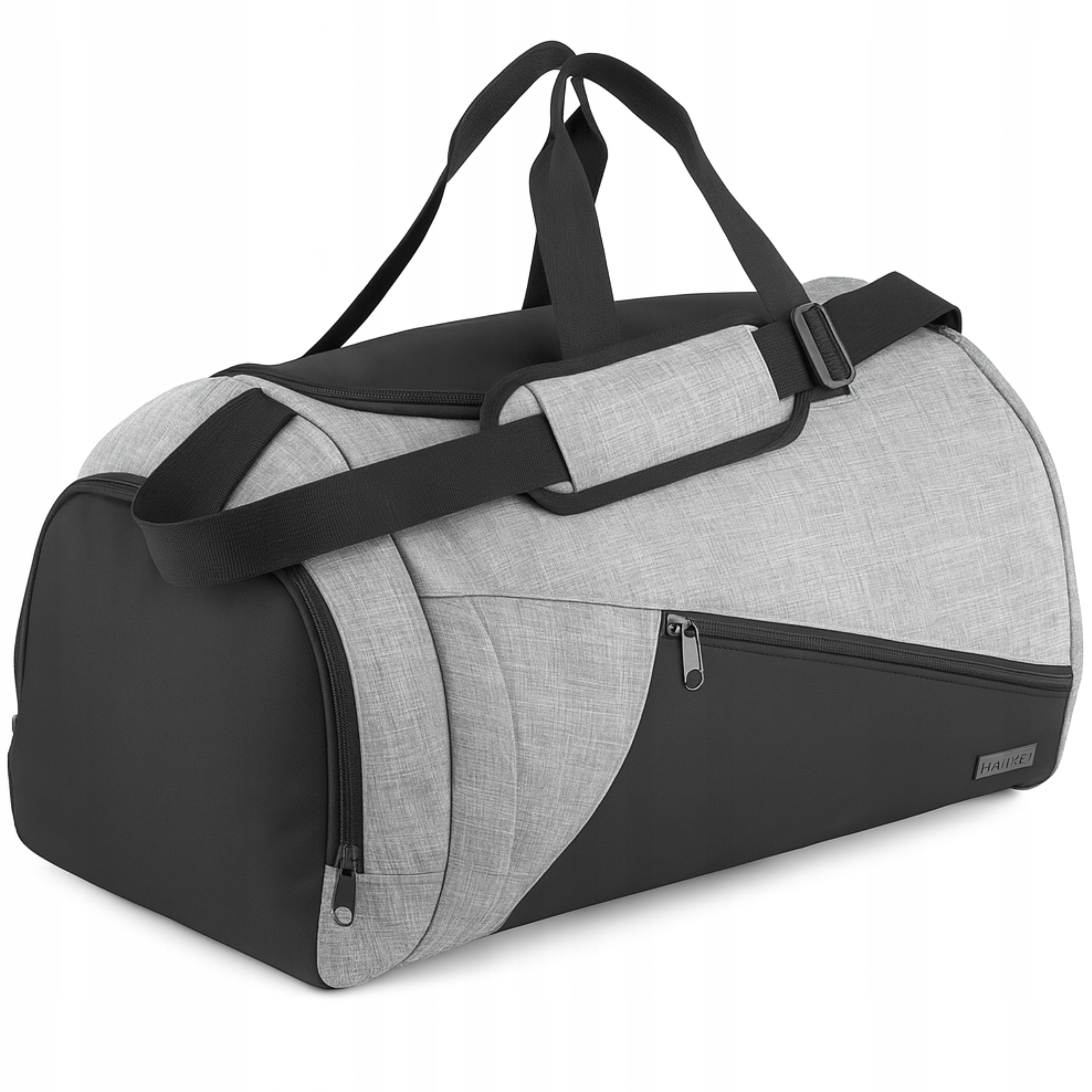 Сумка оснащена просторным основным отделением на двойной молнии, а также дополнительными карманами, в том числе боковым для обуви и небольшим передним карманом для мелочей. Благодаря использованию тройных швов и усиленных ручек сумка отличается высокой прочностью, при этом легкая конструкция обеспечивает удобство ношения.