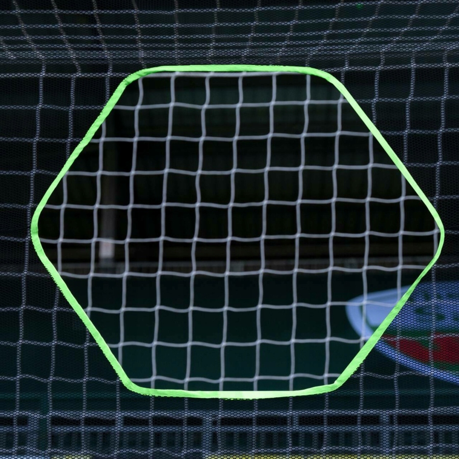 Изделие изготовлено из высококачественной полиэфирной сетки, которая исключительно устойчива к ударам и сохраняет свою структурную целостность даже при скорости мяча до 96 км/ч. Кроме того, брезент обладает высокой устойчивостью к различным погодным условиям, что делает его чрезвычайно функциональным – его можно использовать как на открытом воздухе, так и в помещении. Быстрая и простая сборка благодаря гибким эластичным шнурам позволяет сразу прикрепить брезент к воротам.