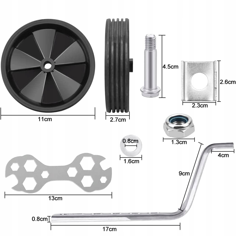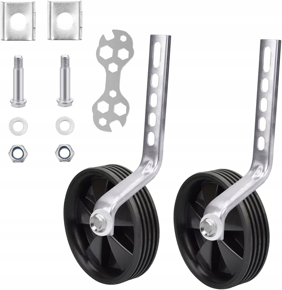 - ✅【Набор опорных колес】: Изделие состоит из 1 пары черных колес, 2 опорных рам и соответствующих винты и 1 многофункциональный ключ. Опорные колеса велосипеда изготовлены из высококачественных металлических материалов и пластика, что обеспечивает дополнительную устойчивость и безопасность, безопасность, прочность и долговечность детей.