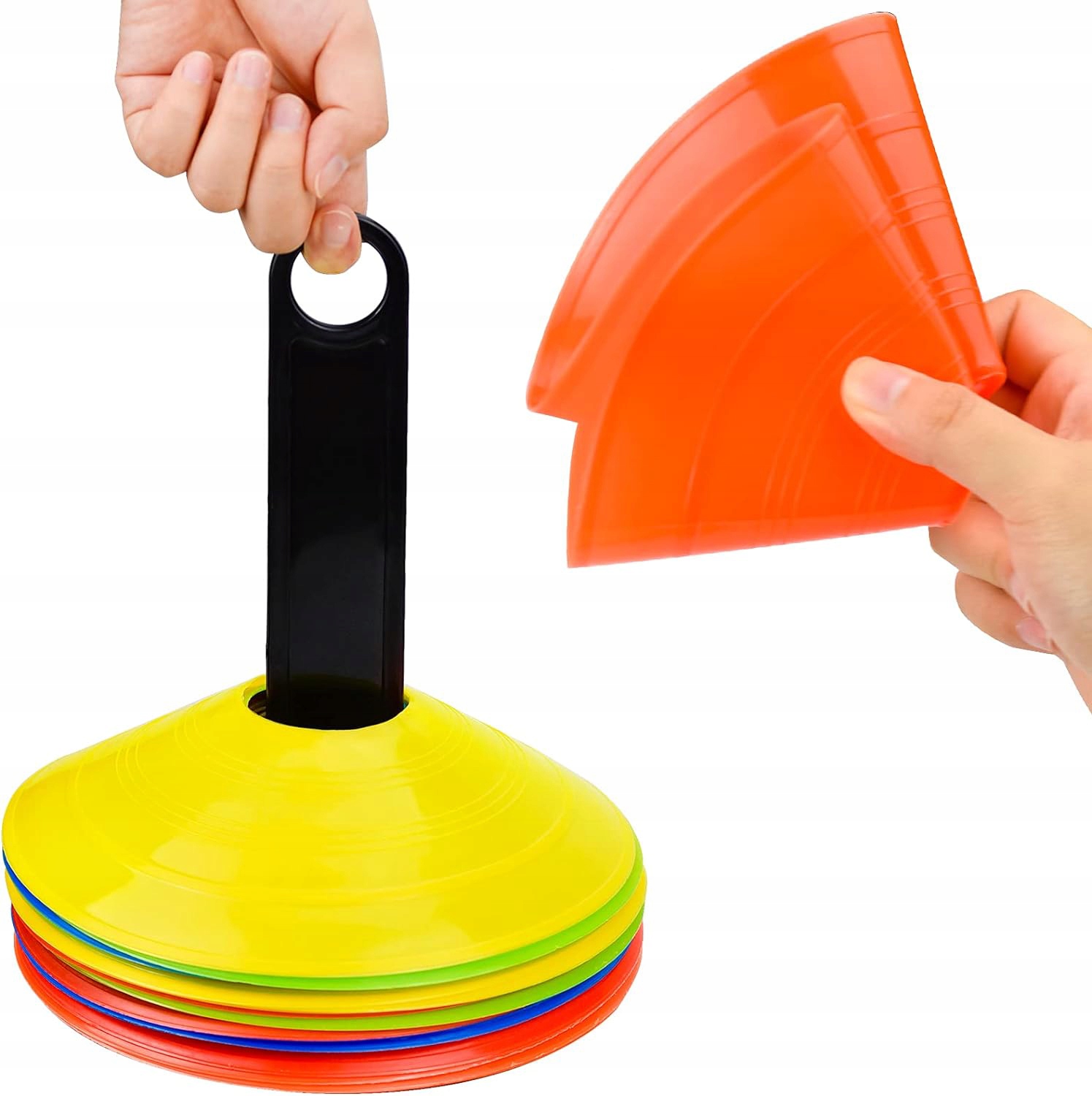 ⚽ 【Удобное хранение】 Благодаря стойке для хранения комплект маркировочных колпачков можно складывать на стойку, его легко хранить и использовать, он легкий и удобный в переноске.
