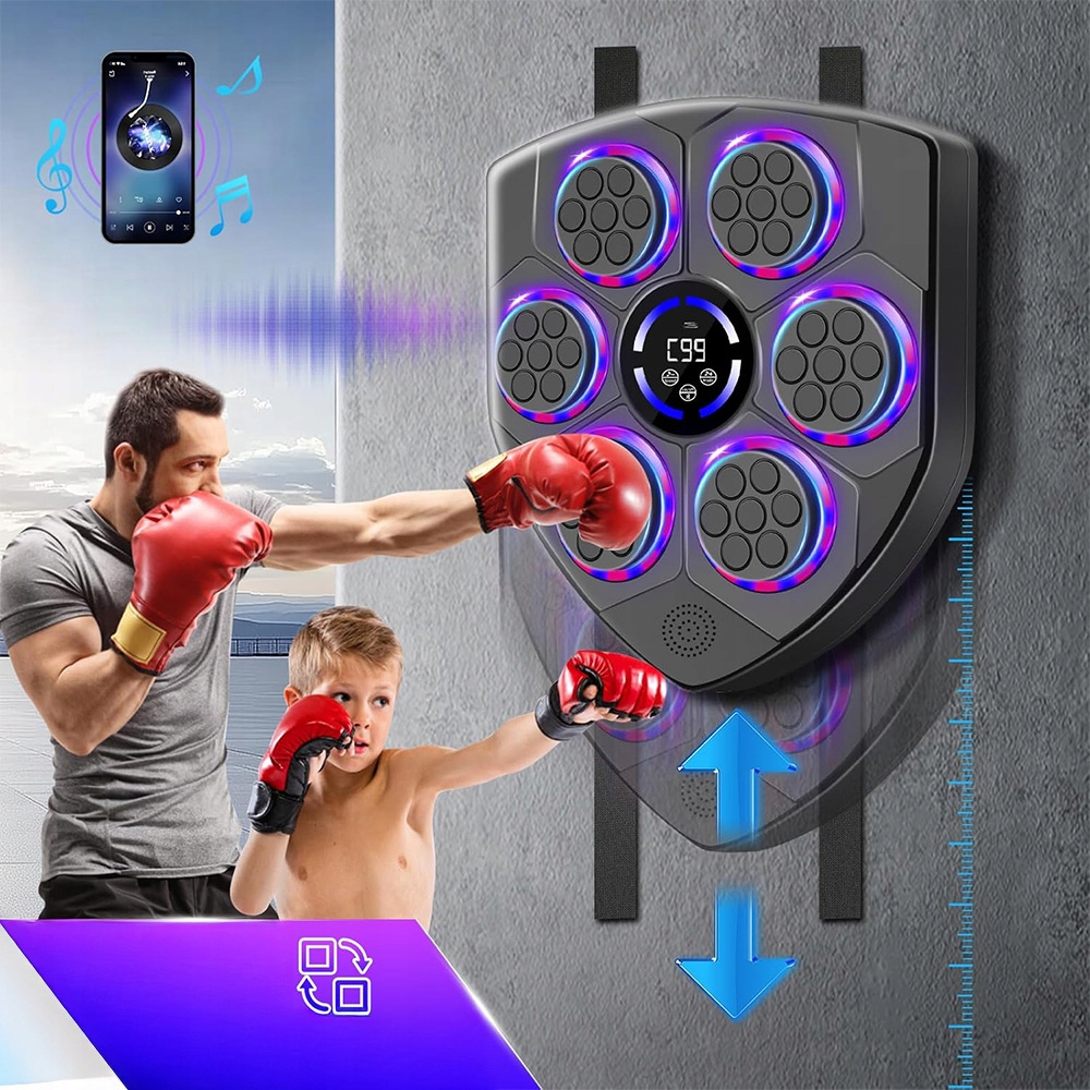 🎁🎁Универсальное использование:Музыкальный боксерский автомат со светодиодной подсветкой поставляется в комплекте с парой дышащих боксерских перчаток, подходящих как для мужчин, так и для женщин. Они обеспечивают эффективное расслабление запястий и комфорт даже во время длительных тренировок. Он подходит для людей всех возрастов и уровней физической подготовки и является идеальным тренировочным устройством для всей семьи или для профессионального использования.