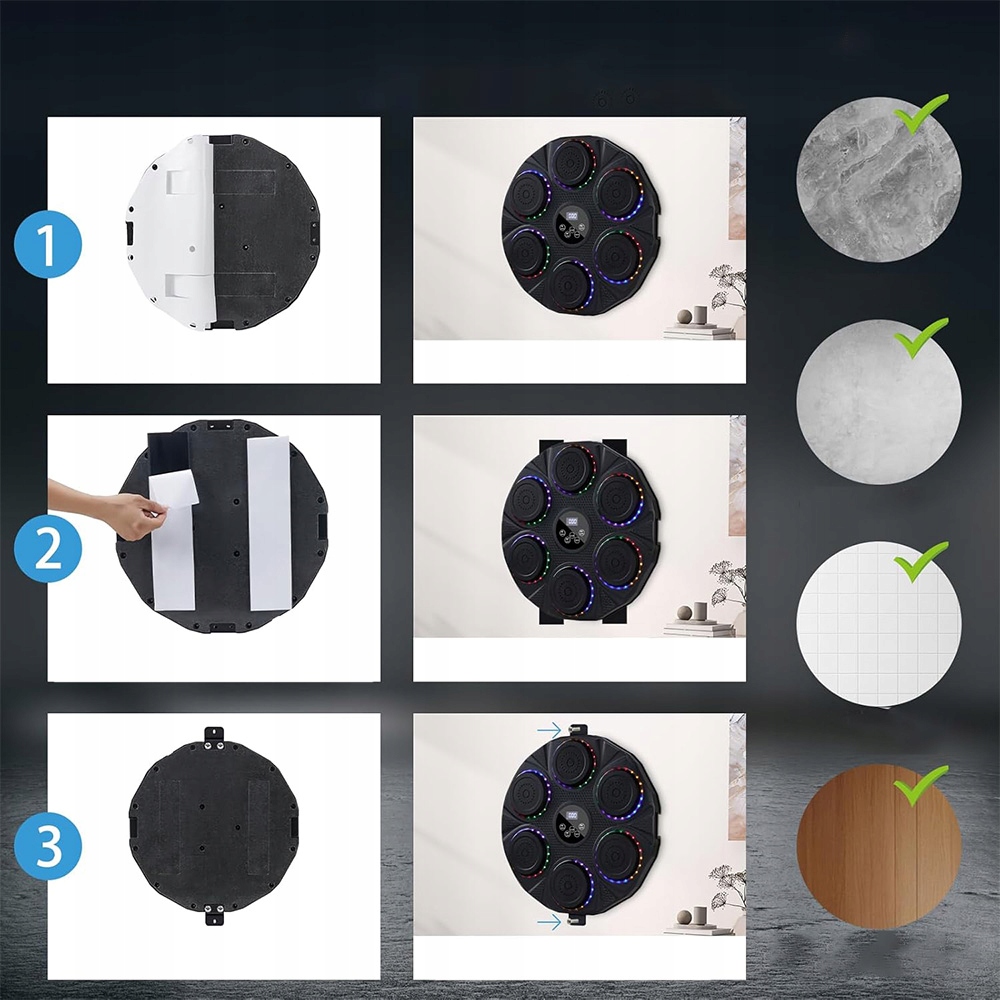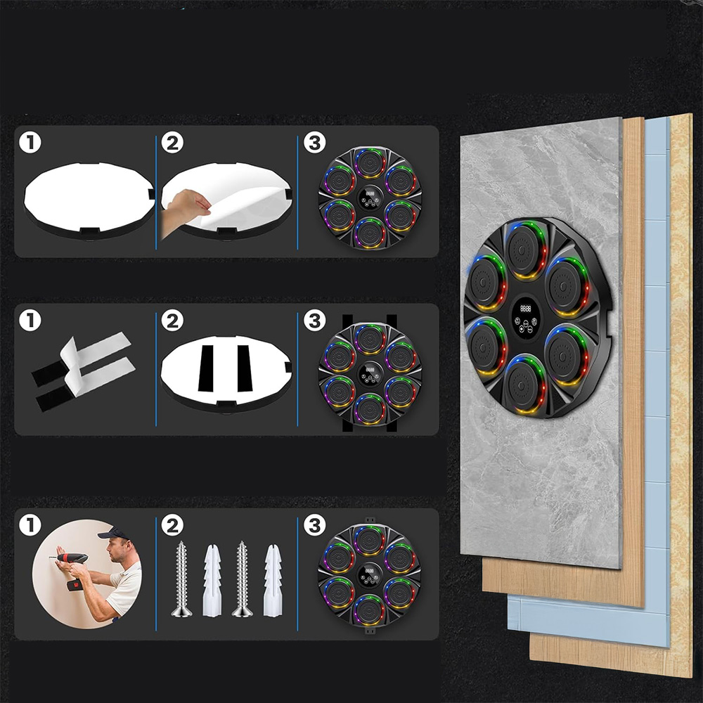 ☑️ Мишень не заставит вас танцевать в ритме музыки, но подарит ощущение интенсивной или легкой тренировки - в зависимости от выбранной вами быстрой/медленной мотивационной музыки - вы можете регулировать скорость ударов под музыку. Вы можете подключить любимую музыку через Bluetooth.