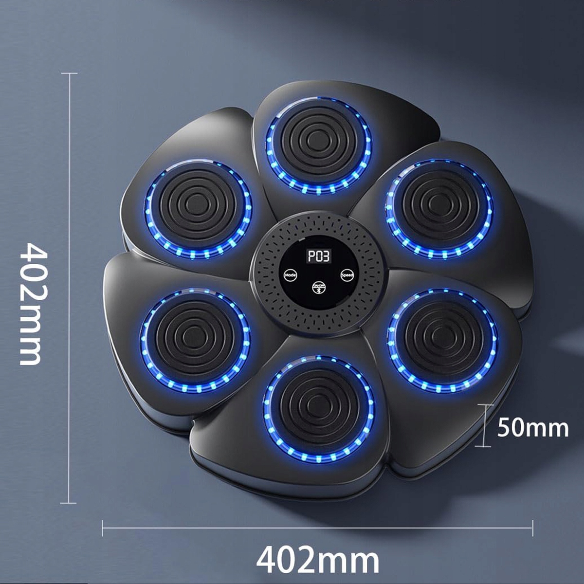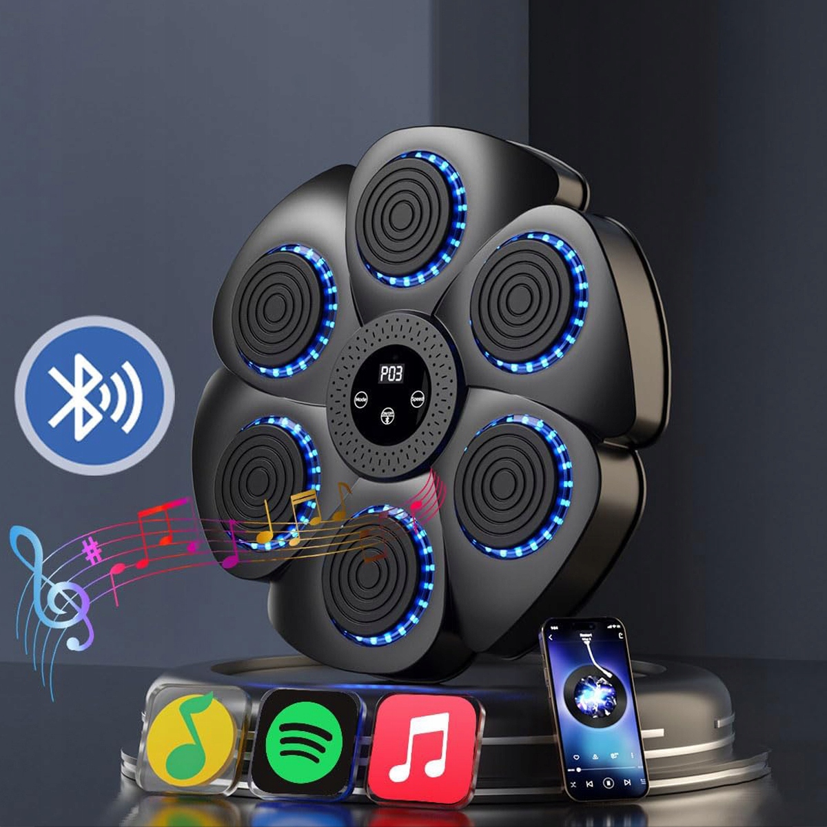 Этот интеллектуальный музыкальный боксерский тренажер динамически подключается к вашему смартфону через Bluetooth, позволяя вам воспроизводить любимую музыку во время тренировки. Светодиодные световые эффекты идеально соответствуют ритму, создавая захватывающую тренировочную среду. Сочетание звука и визуализации делает каждый удар более эффективным, мотивируя работать усерднее.