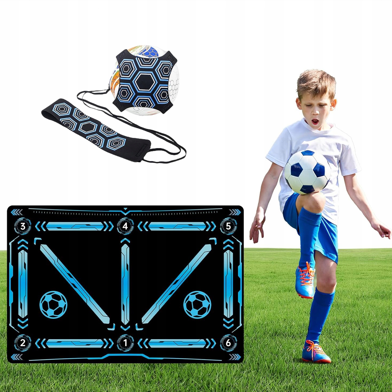 Этот спариваемый спариваемый коврик содержит утолщенный коврик с футбольными упражнениями 60 х 90 см и регулируемым футбольным тренером. Подходит для тренировочных навыков в футболе, баскетболе, волейболе и других видах спорта с мячом. Центр и спина сделаны из очень гибкой, тихой губки и абсорбирующей ткани. Конструкция без SLIP обеспечивает безопасность во время использования. Тихой коврик позволяет вам практиковать дома, не беспокоя других.