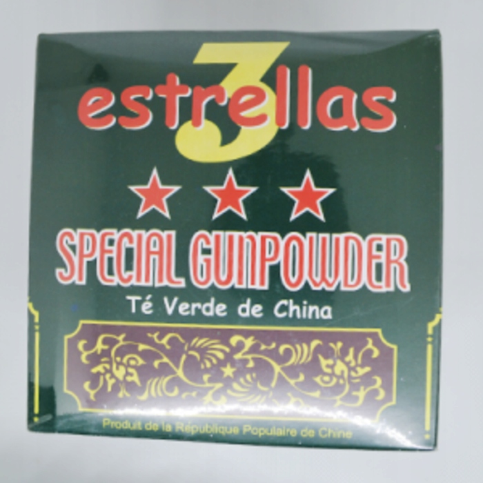 "Tres Estrellas" - это чайный бренд «Три сокровища», особый белый чай из Китая, который сочетает в себе белый чай, сушеные кожи мандарина и рисовый стебель, с белым чаем, упакованным в кожу и привязанный рисовый стебель. Затем чай сушат на солнце и тени, прежде чем он будет упакован в индивидуальную упаковку для удобного использования.