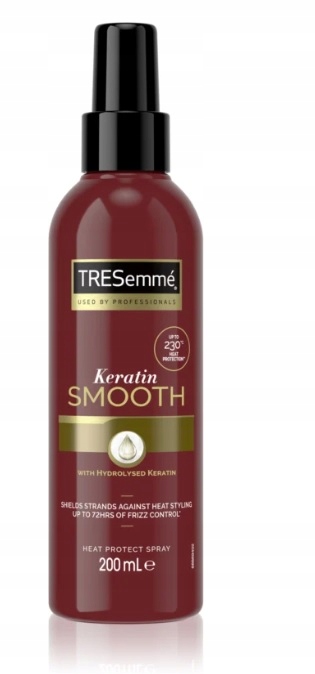 Профессиональный термозащитный спрей Tresemmé Keratin Smooth для горячей укладки волос феном или выпрямителем. После использования ваши волосы будут идеально уложенными, гладкими и блестящими. Подходит для всех типов волос, в том числе и для окрашенных.