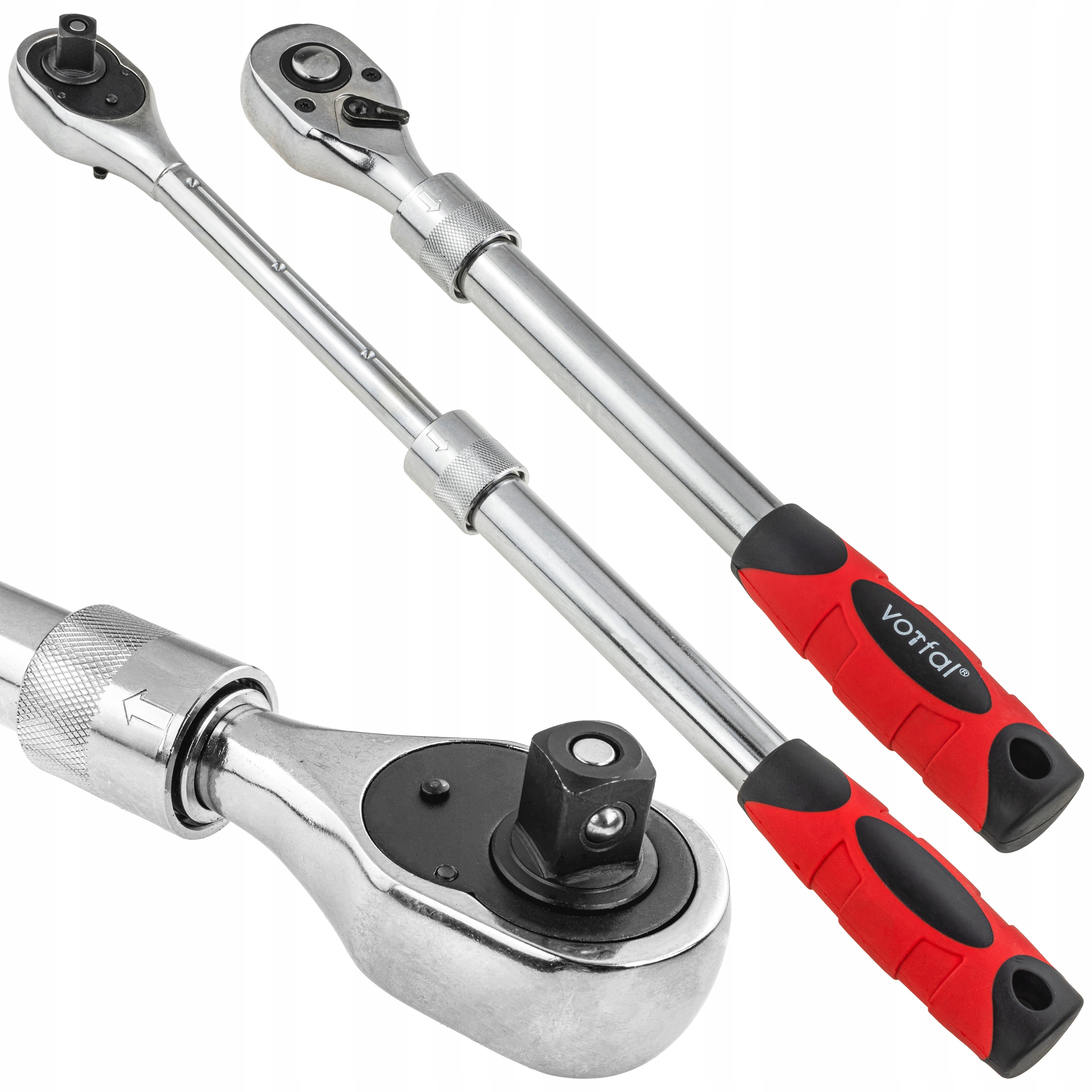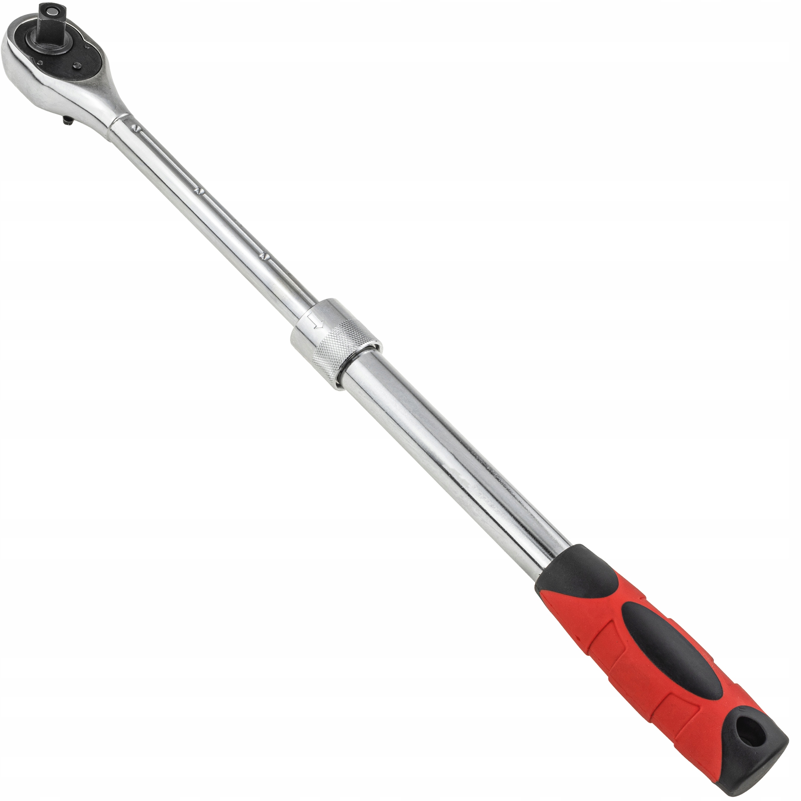 Телескопическая трещотка для головок 1/2 дюймадлиной от 305 мм до 445 мм. Трещотка изготовлена из хромованадиевой стали CrV6135. Используйте для сервисных, мастерских и промышленных работ.