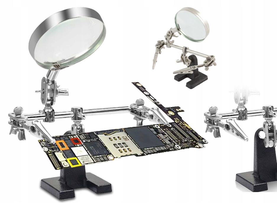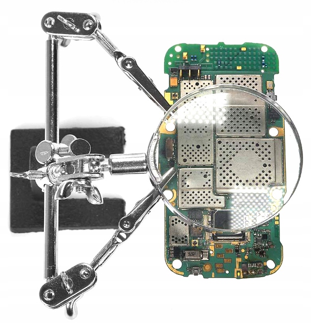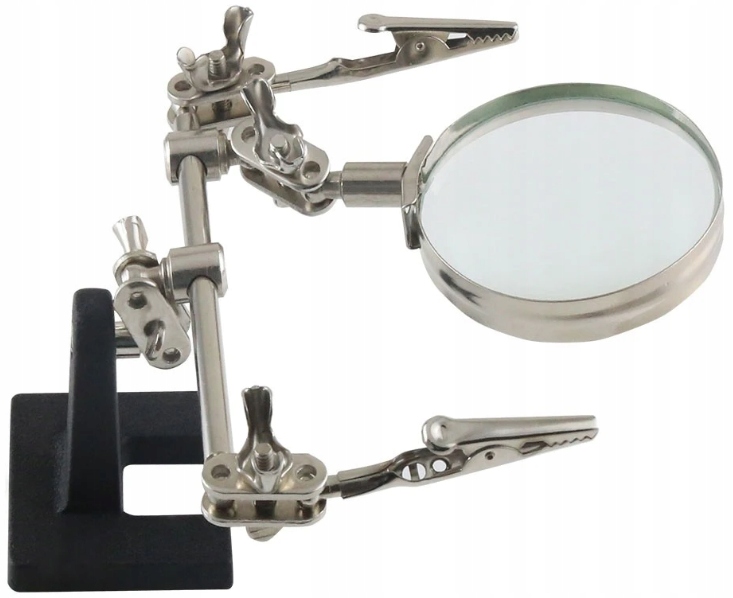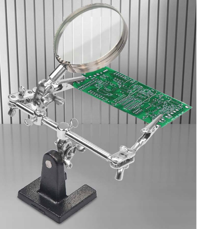 - Держатель третьей руки с лупой — незаменимый помощник при пайке и распайке мелких элементов.