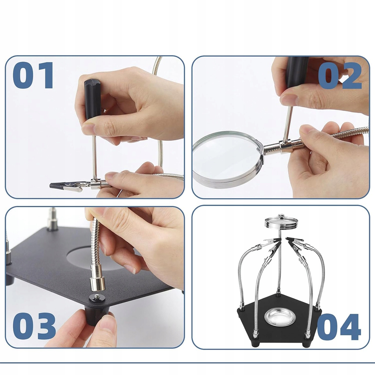 Третья рука пайки Магнитные руки помощи Приспособление для пайки с увеличительным стеклом 4 гибких рычага и зажимами типа «крокодил» Инструмент для изготовления моделей Аксессуар Держатель печатной платы для поделок Ювелирные изделия Хобби-мастерская