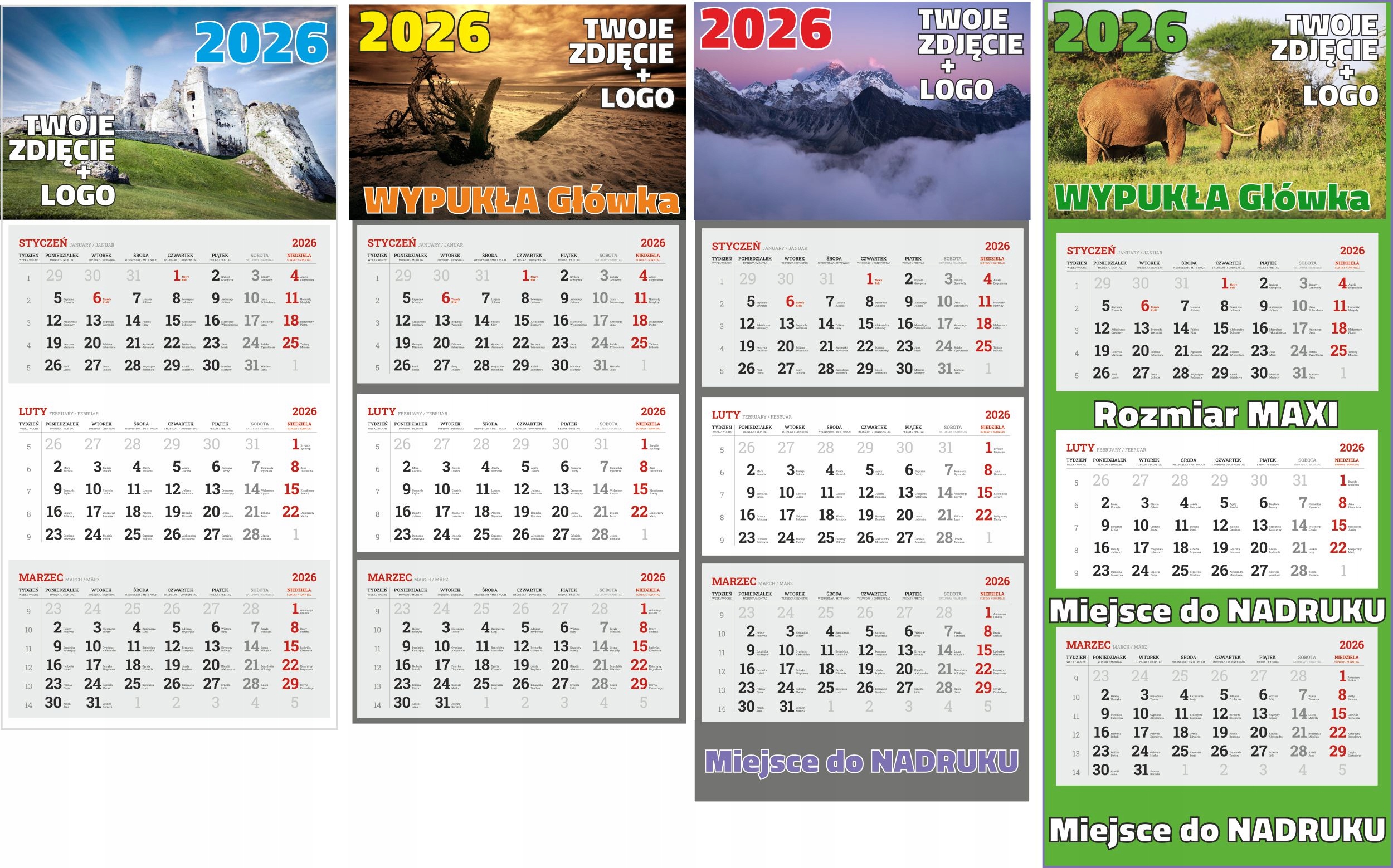 Среди других наших предложений вы можете купить службу проекта тройного календаря. Такой проект можно использовать при печати календари, приобретенных в этом предложении. мы обслуживаем наших клиентов всесторонне - от проекта до печати.