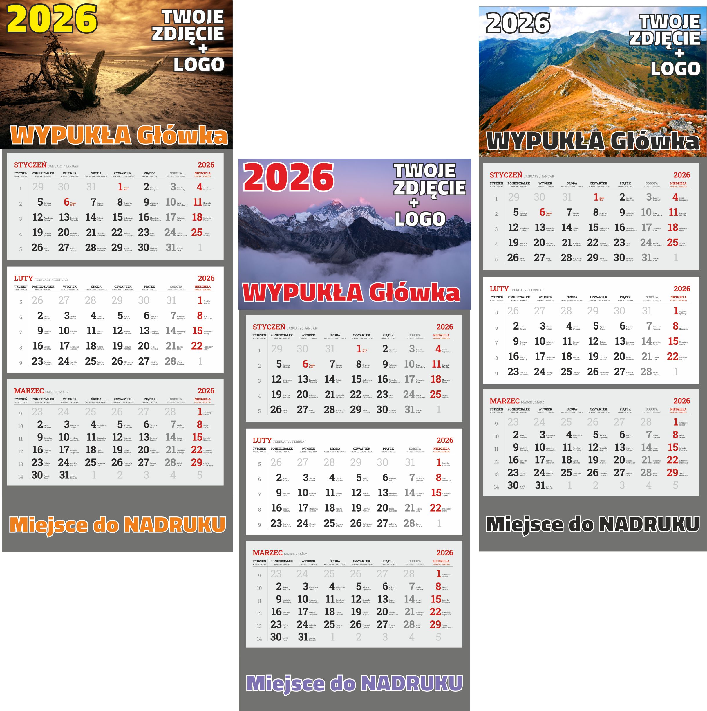 Голова календаря напечатана в полном цвете , что позволяет создавать любой графический дизайн, размещение персонажей компании, фотографий, текстов в любых цветах. Подложка, используемая для печати, представляет собой специальное картон Аляски с весом 250 г, что гарантирует очень хорошее качество цвета . Добавление используемой флэш -фольги явно оживляет цвет и в то же время увеличивает долговечность календаря. В верхней части головы есть отверстие, которое позволяет вам приостановить календарь. Верхний край календаря дополнительно потерян и приклеен, что укрепляет его жесткость. В середине календаря, над календарем, большая линия работает, благодаря которой легко сложить пополам. Головы прикреплены к голове в нейтральном сером цвете .