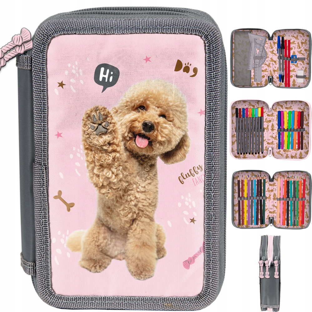 3-chamber Cencil Case с оборудованием из последнего пасо Коллекция собака. На фронте графика с мотивом . Оборудование включает в себя: