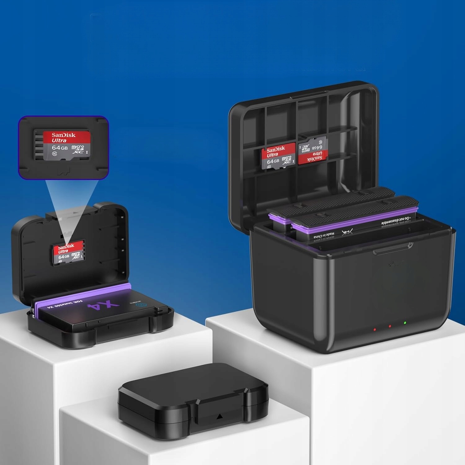 - ✅ Чтобы получить эффективность быстрой зарядки, убедитесь, что входная мощность составляет 5 В/3 A. Набор включает в себя два ящика для хранения, в каждом из которых может разместиться батарея и SD -карта, что облегчает перенос. (Примечание: SD -карта не включена)