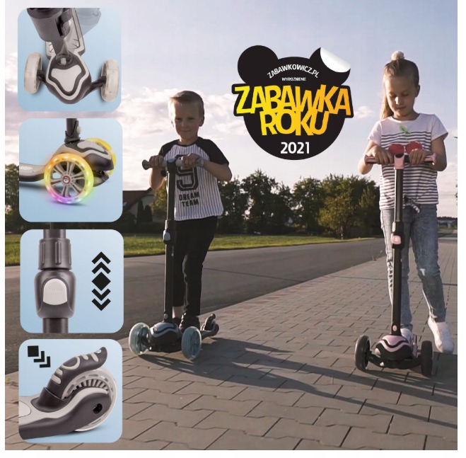 Скутер со светодиодами - радость и безопасность вечером! Фантастическое веселье. Светодиоды, встроенные в передние колеса, сияют во время вождения, обеспечивая лучшую видимость во время вечерних прогулок. Кроме того, эти светящиеся колеса, безусловно, привлекут внимание других детей.