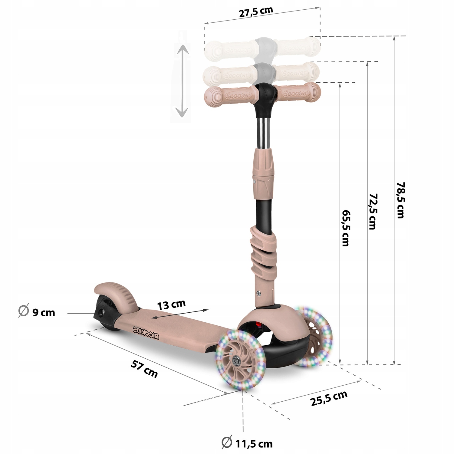 Управление осуществляется только , балансируя с телом, b> без скручивания руля. Просто слегка наклонитесь в желаемом направлении и теперь! Ребенок быстро овладевает этой техникой вождения и в то же время управляет своим чувством равновесия. скутер, скручивающий, остается стабильным вертикально, благодаря трем колесам.